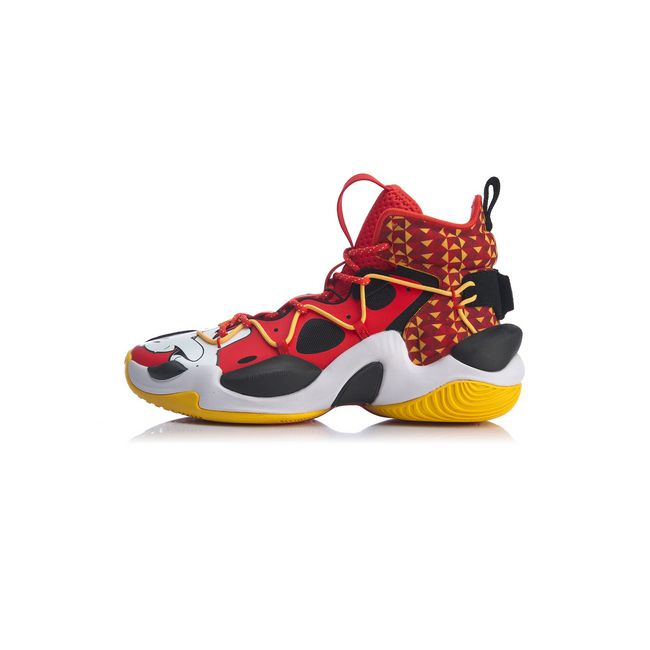 New arrivals! 空袭 6代 premium edition 新年配色 shoes have been released by Li-Ning company and OG SLICK who is a patriarch person in America street. The Chinese new year colorway is designed with cute Mickey, LN HANDS and ingot elements in upper vamp. Double cushion technologies in sole can offer good bounse, defense and offense.