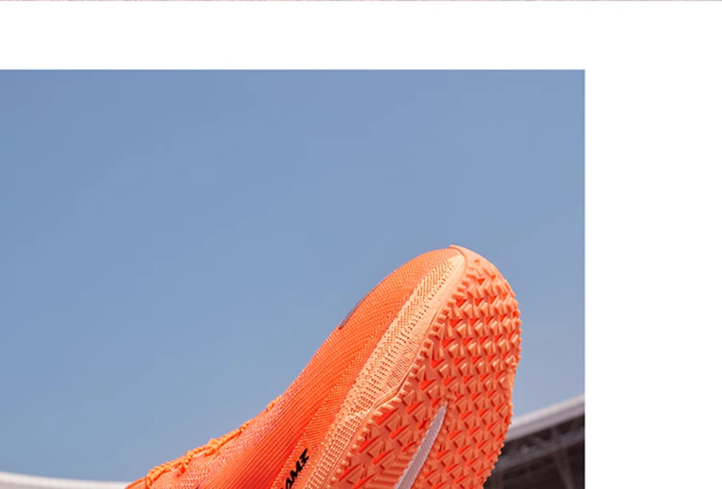 KFLAME Nylon Elastomer Midsole: Made of lightweight materials, each shoe weighs only 168 grams. The midsole rebounds quickly, providing rapid propulsion during toe-off, which helps with sprinting without any lag.