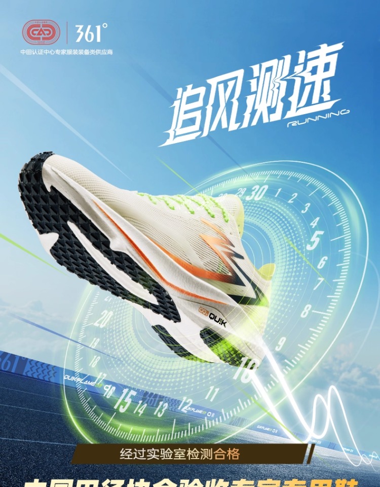 Midsole Technology: Equipped with the QU!KFLAME CQT supercritical foam midsole, which features a dual-density structure. The upper layer provides soft and elastic cushioning, while the lower layer is tough and enhances the stability of the foot during the push-off phase. Combined with the pressure-release window design, it reduces ground impact and achieves a "soft yet responsive" footfeel.