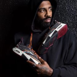 Dominant matte-black base with holographic lines and colored strips, the Anta Kai 2 paying tribute to Irving’s iconic 2012 game where he scored 41 points wearing a black face mask – symbolizing his "killer instinct" beneath a flashy playstyle.