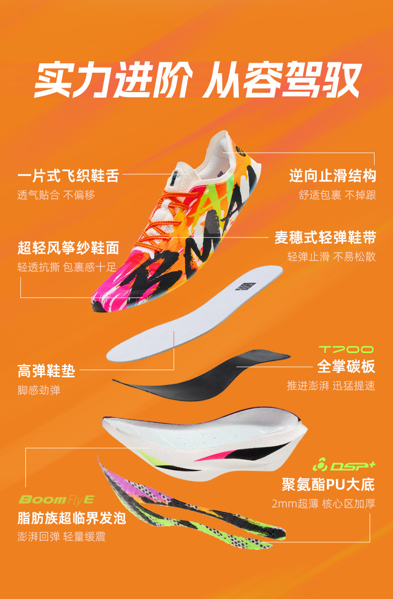 At just 198g, the BMAI Carbon Fiber Fly 2 is built for runners who chase personal bests. Featuring a high-rigidity T700 carbon fiber plate and BoomFly Aliphatic E-TPU foam, this shoe delivers explosive energy return and a seamless rolling transition. Engineered for paces under 4:30/km, it’s the ultimate high-performance racer that combines elite technology with 1,000km+ industrial-grade durability.