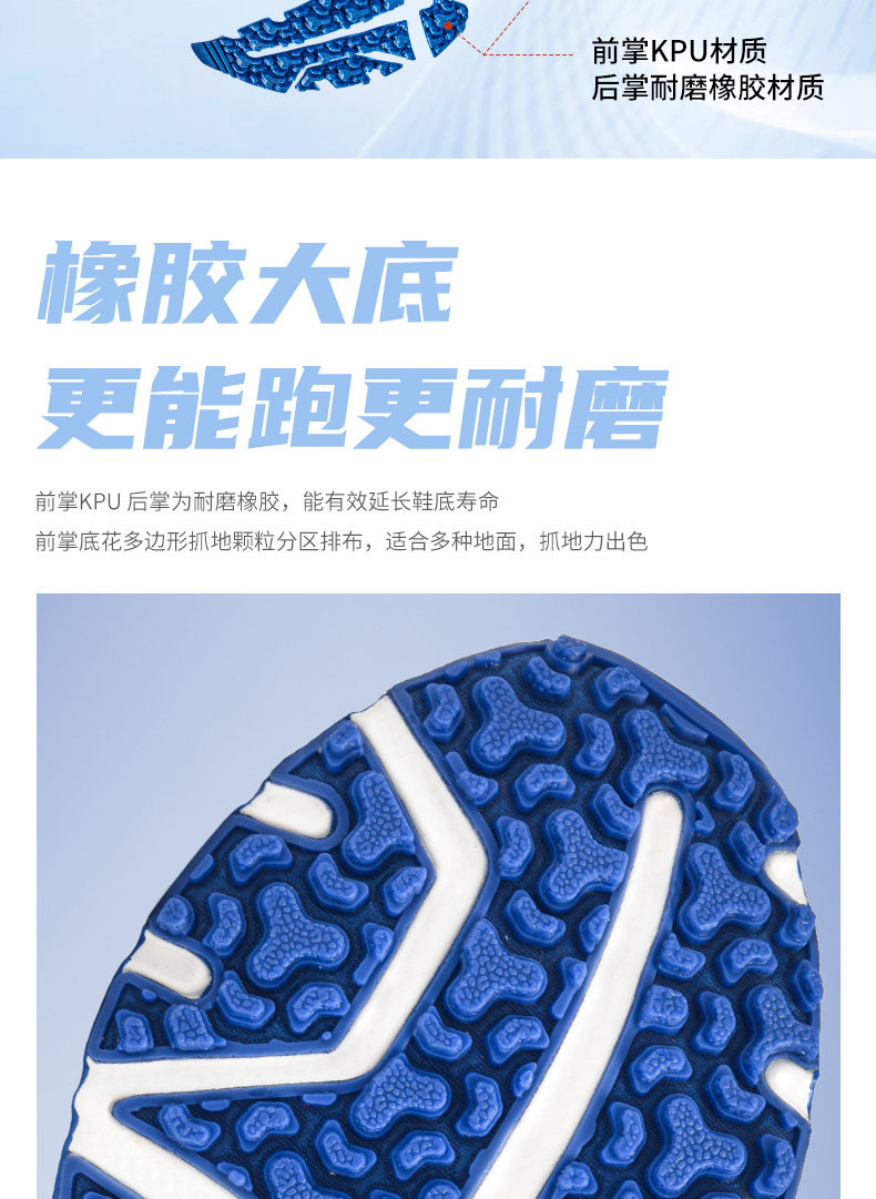| Outsole | Forefoot KPU Traction / Heel Heavy-Duty Wear-resistant Rubber |