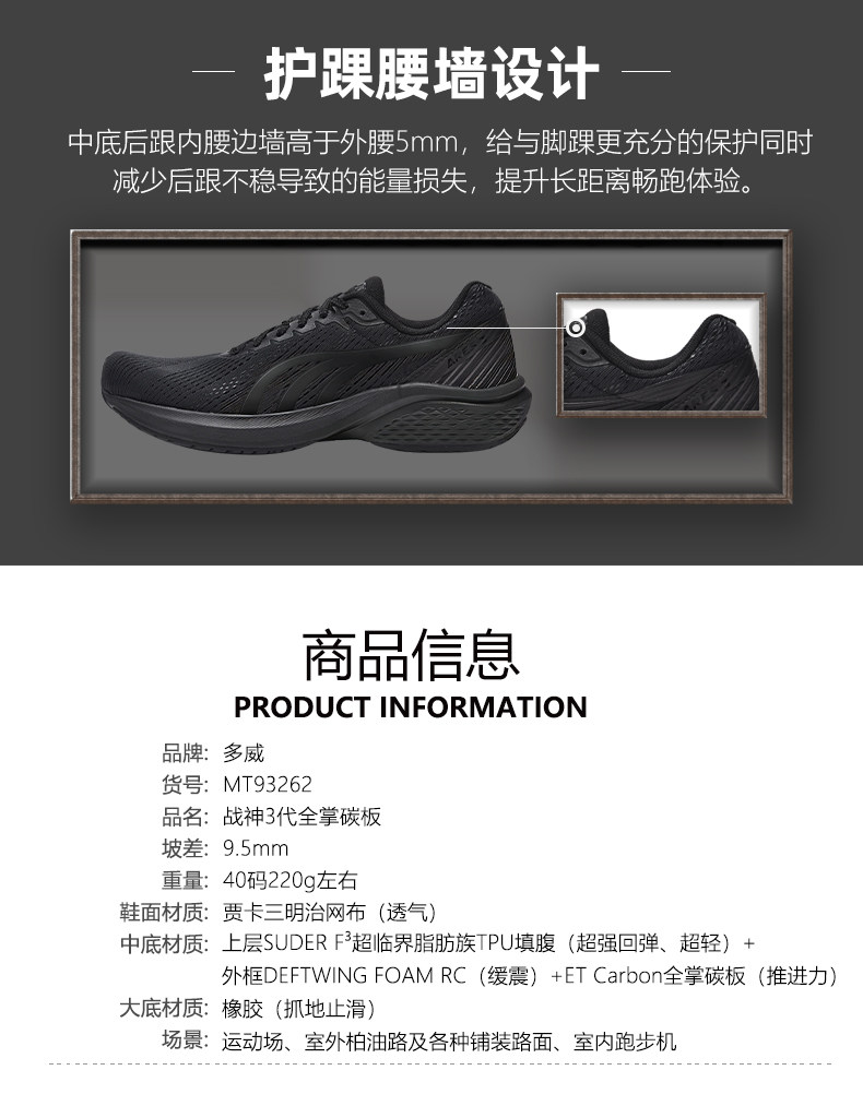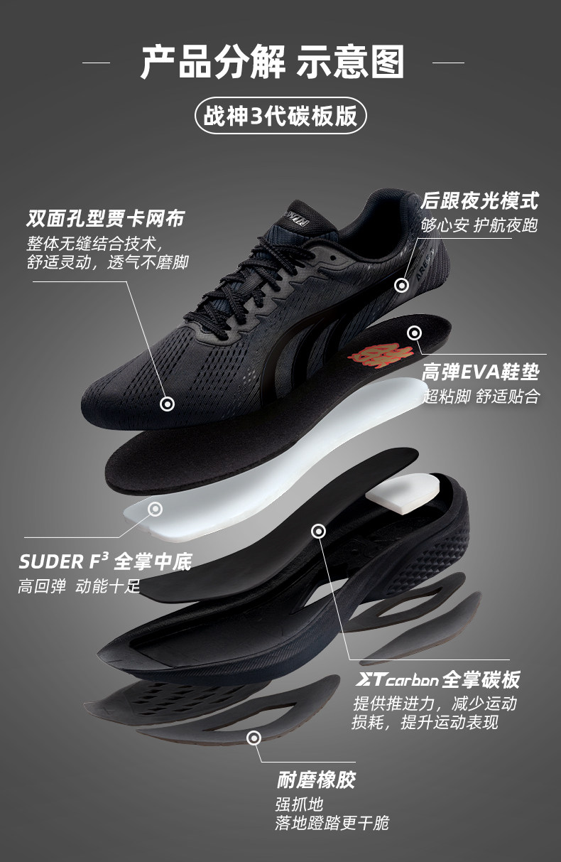 Do-win Ares 3 is a high-performance running shoe designed specifically for marathon racing and professional training. Equipped with a full-length carbon fiber plate for enhanced propulsion, SUPER F³ supercritical foaming midsole for excellent rebound and shock absorption, and breathable jacquard mesh upper for all-day comfort, it delivers outstanding stability, durability and speed performance. Suitable for middle and long-distance runners pursuing efficiency, it adapts to various road conditions such as urban roads and plastic tracks.