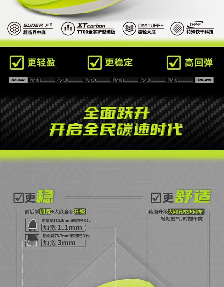 Moving beyond traditional PEBA, the Do-Win PB 4.0 introduces SUDER ATPU supercritical foam. This dual-density architecture (37C Top/45C Bottom) ensures that the shoe doesn't "bottom out" even for heavier runners. Whether you are cruising or sprinting, the 8C hardness differential provides active arch support and shock absorption.
