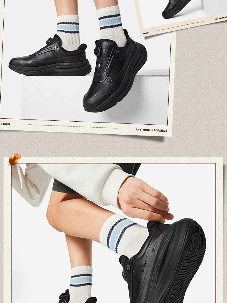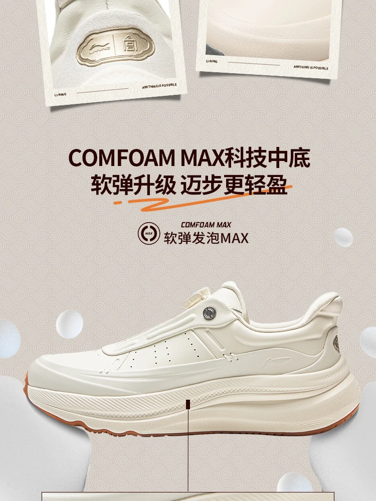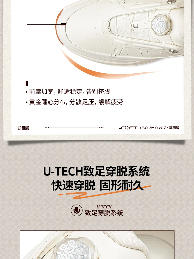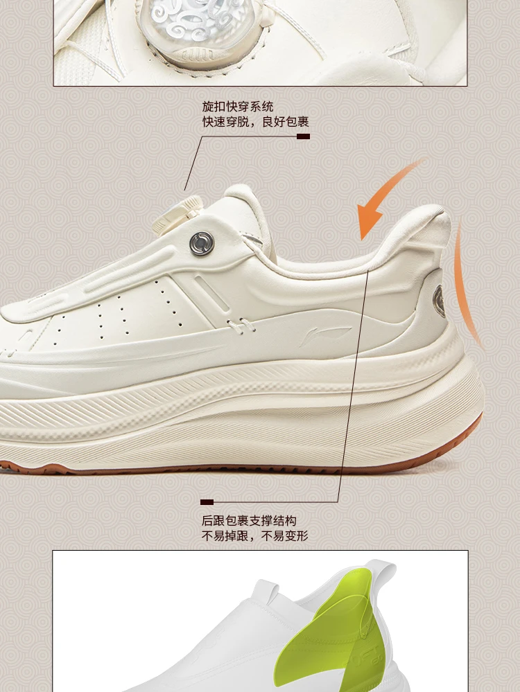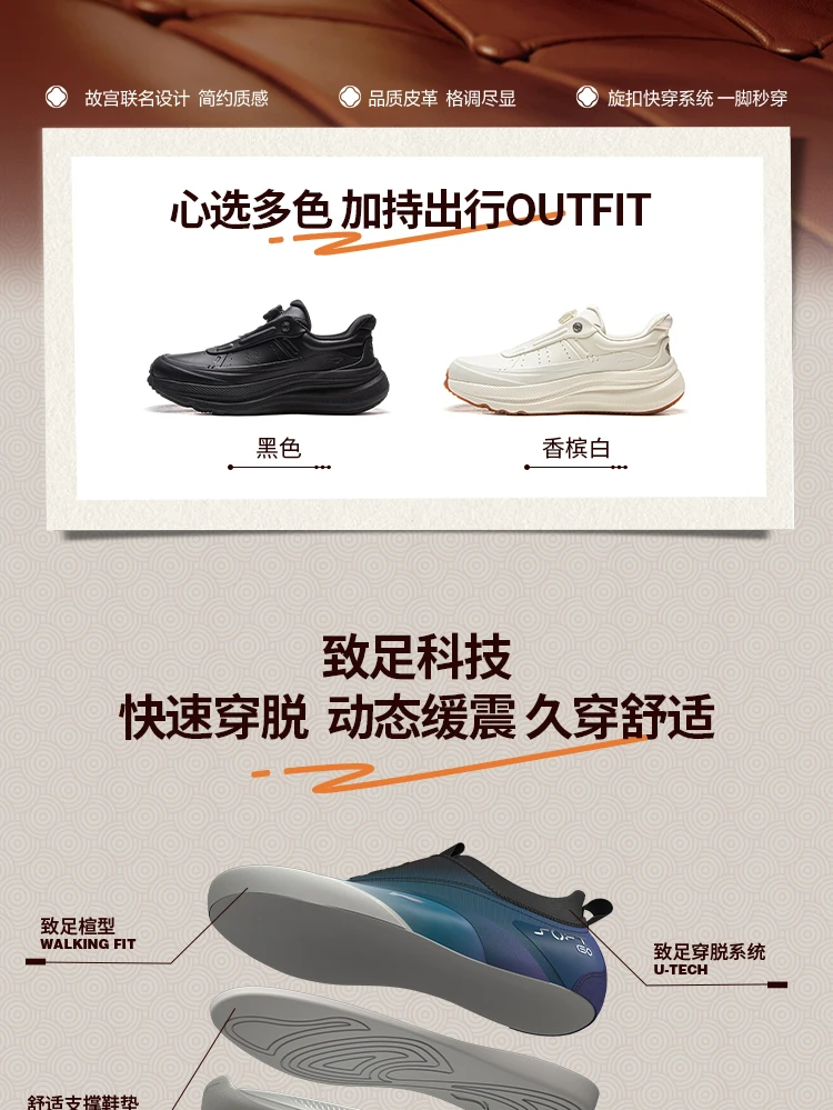 Crafted with a premium upper of genuine cow leather + microfiber leather, the shoes exude sophistication while ensuring durability. Design highlights include a cloud-patterned U-TECH quick-lace dial (echoing imperial architectural motifs) and a debossed Li-Ning x Forbidden City emblem on the heel – subtle nods to China’s imperial heritage. Available in versatile colorways (oatmeal gray, champagne white, sleek black), they seamlessly transition from casual outings to smart-casual settings, elevating any winter wardrobe.