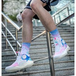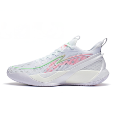 The Rush Wave colorway is inspired by Chinese aesthetics and features a white base color with a jade-like TPU module on the front of the shoe's upper. The shoe's upper is constructed with a large area of woven material, complemented by Li Ning's COOL SHELL breathable technology to ensure optimal ventilation during gameplay.