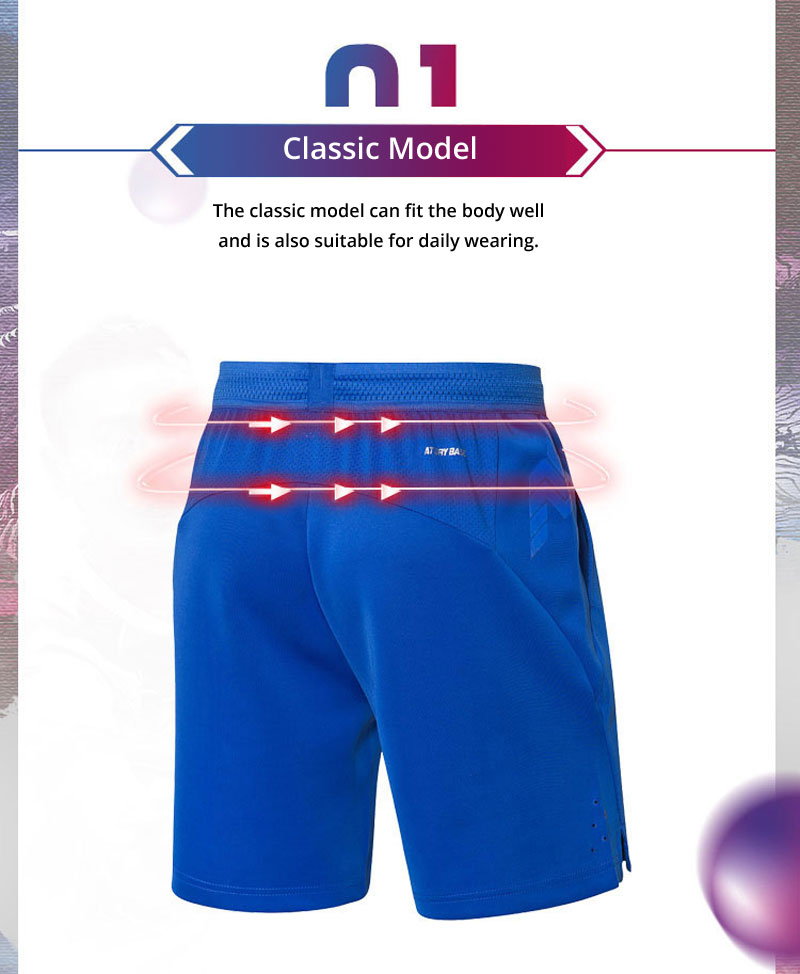 The men's badminton shorts are tailor-made for China National men's badminton team for 2019 All England Open and other badminton match. Decked with blue color, the badminton shorts are regular fit and feature ventilation hole on waist and back, side wipe-sweat design and elastic drawstring.