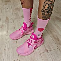 New arrivals! Based on lining way of wade 7 white colorway, here comes a pair of special and unique sneakers. Inspiration of the customized color comes from classic purple/gold of Laker, Los Angeles. There are "8" and "24" jersey numbers in side of the midsole. Two velcro belts are designed to salute to famous player Kobe Bryant, which means Mamba' spirit never die and keep forever.