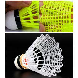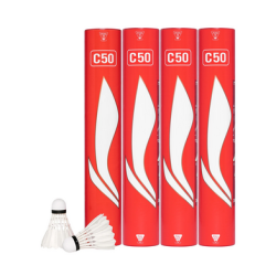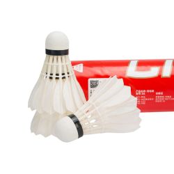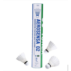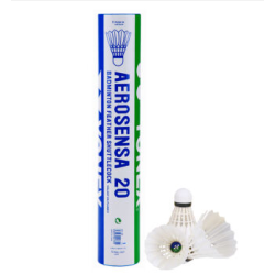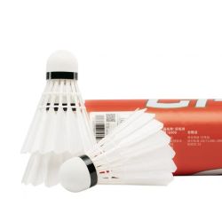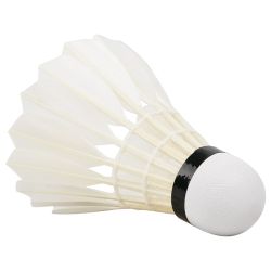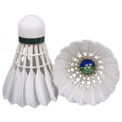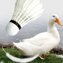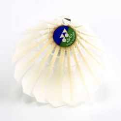 Badminton Shuttlecock originates from England 1870 and develops in 1992 Olympic game. Shuttlecock has an open conical shape: the cone is formed from 16 or so overlapping feathers, usually goose or duck, embedded into a rounded cork base. The cork is covered with thin leather. [1] To ensure that shuttlecocks rotate consistently, only feathers from the birds' left wings are used. [2] The shuttlecock's shape makes it extremely aerodynamically stable.
