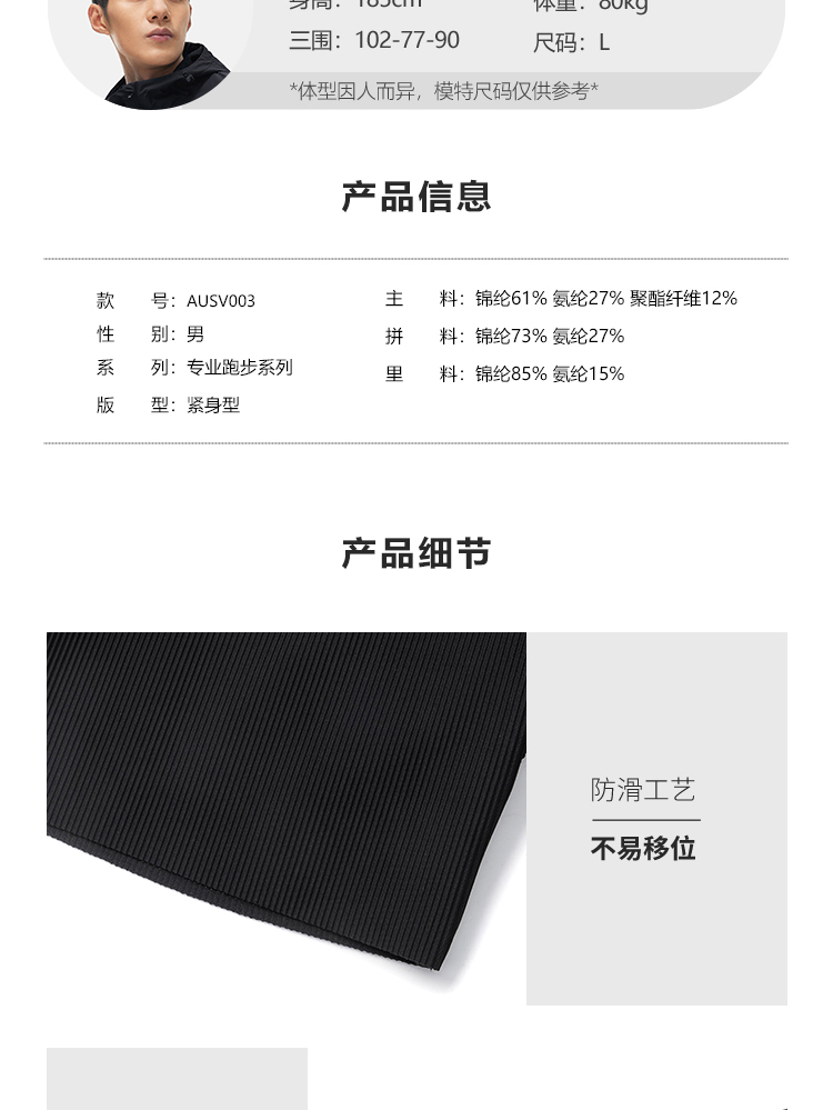 Fabric composition: Main fabric - 57% Nylon, 33% Spandex, 10% Polyester; Contrast fabric - 73% Nylon, 27% Spandex; Lining - 85% Nylon, 15% Spandex. Rigorously tested by third-party laboratories, it meets high standards for breathability, stretchability and durability.