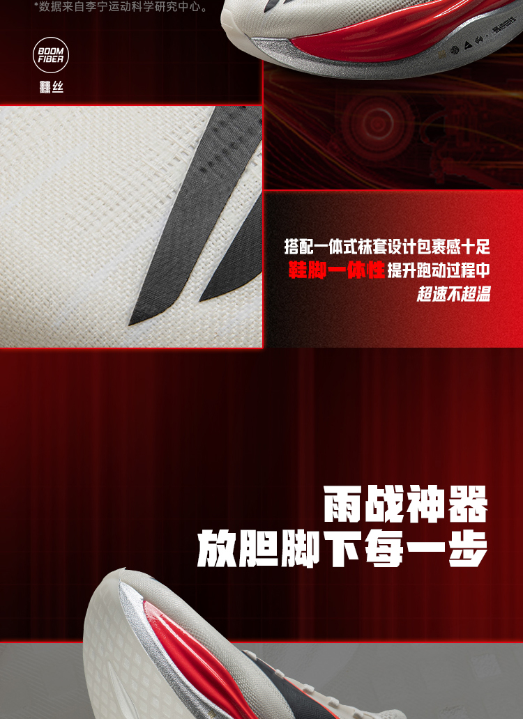 * Upper Design: Built with Boom Fiber Tech and AI jacquard weaving, the upper boosts breathability by 35% while maintaining a lightweight, agile fit during runs.