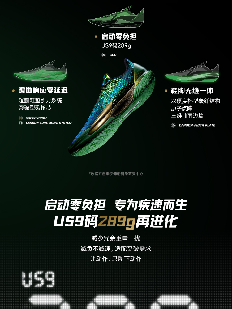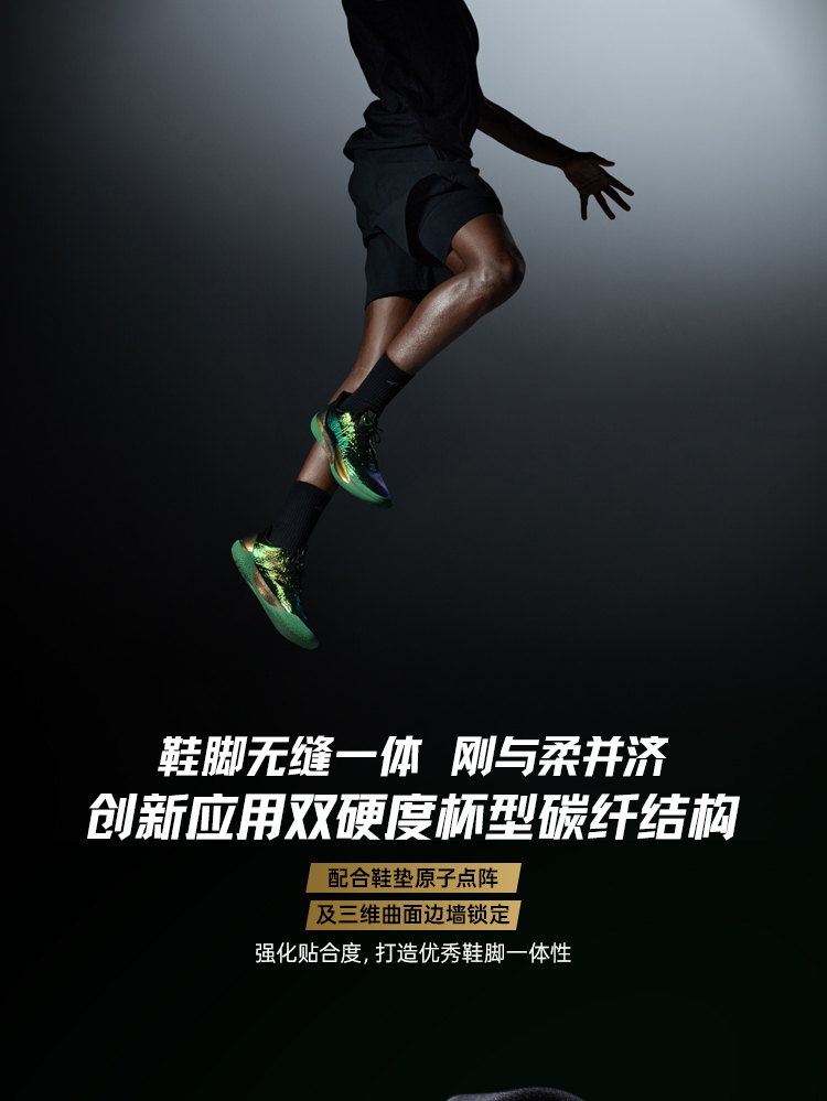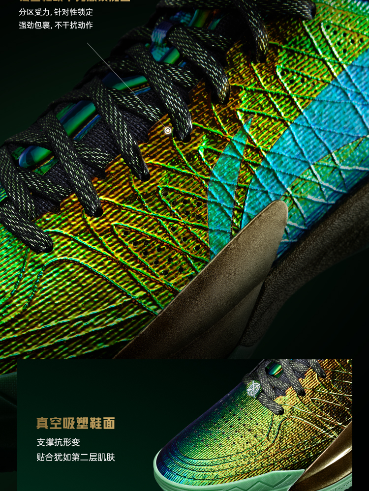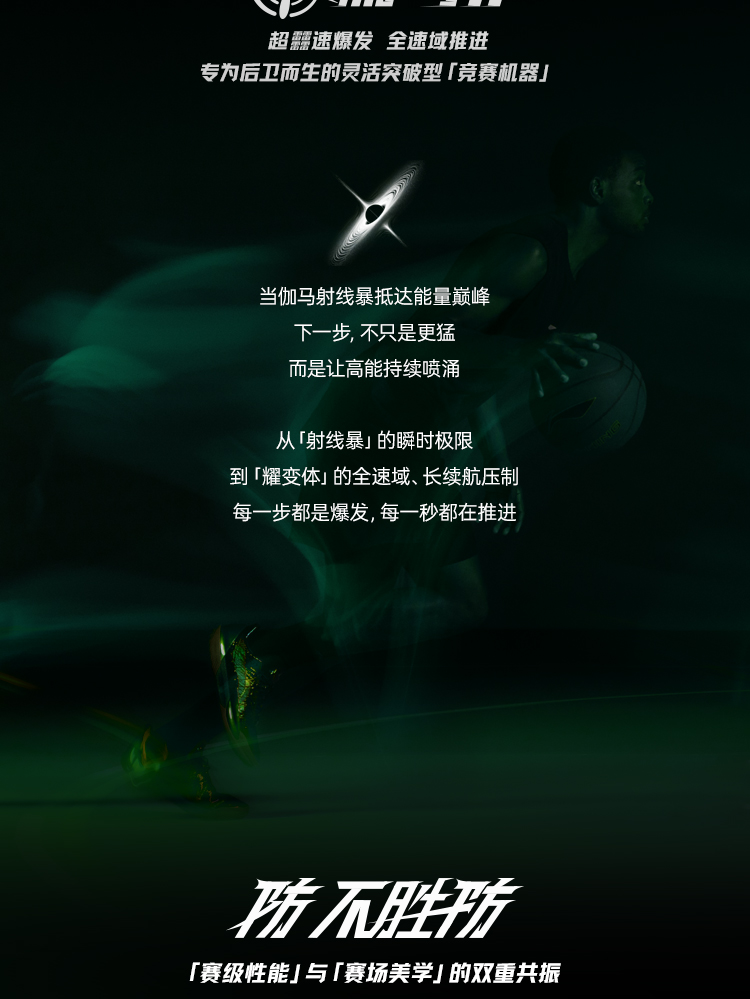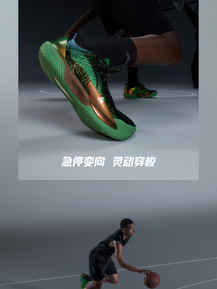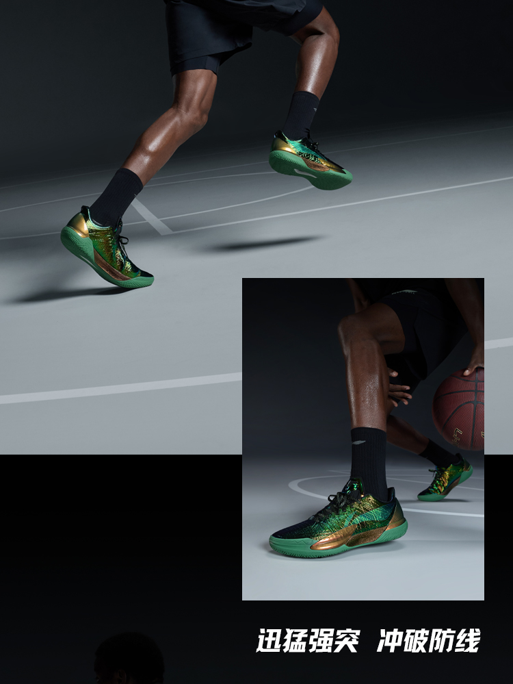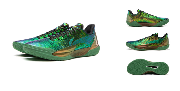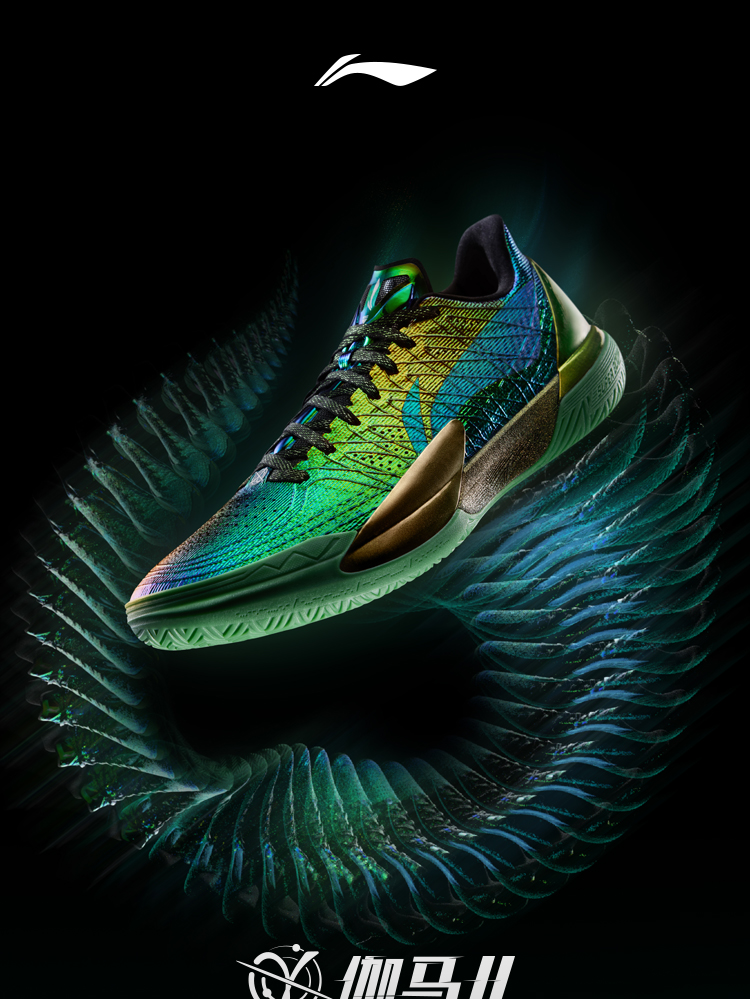 Launched on January 17, 2026, the Li-Ning Gamma 2 "Blazar" iteration takes inspiration from the astronomical phenomenon of the same name—known for high-energy radiation and rapid light variations. It features a striking full-body dark green colorways, complemented by iridescent spray-painted midsole details that mimic the cosmic glow of a Blazar. Crafted with vacuum-formed upper material, it delivers a snug, sock-like fit while ensuring exceptional breathability and durability—perfect for intense, all-game wear.