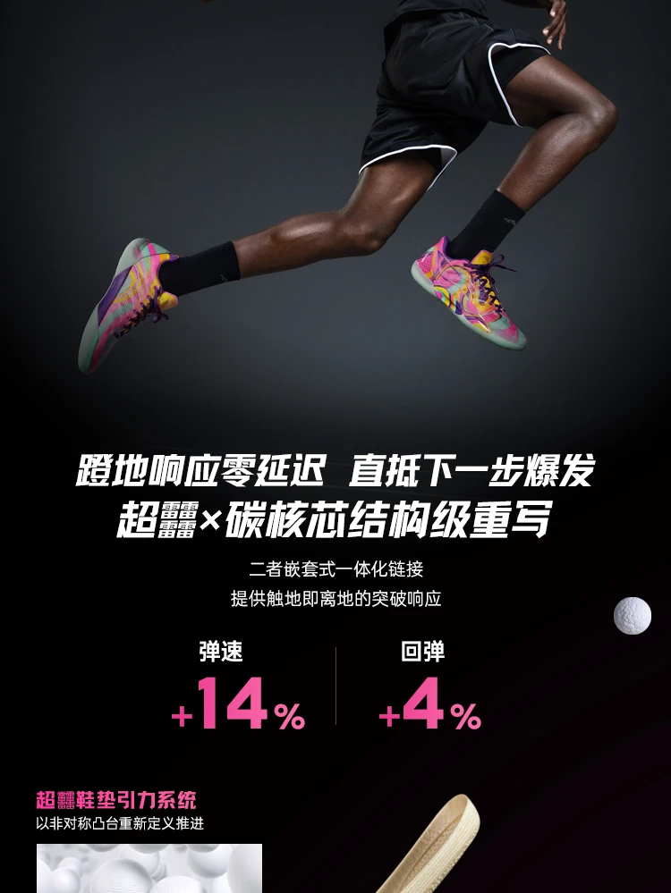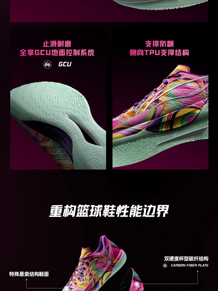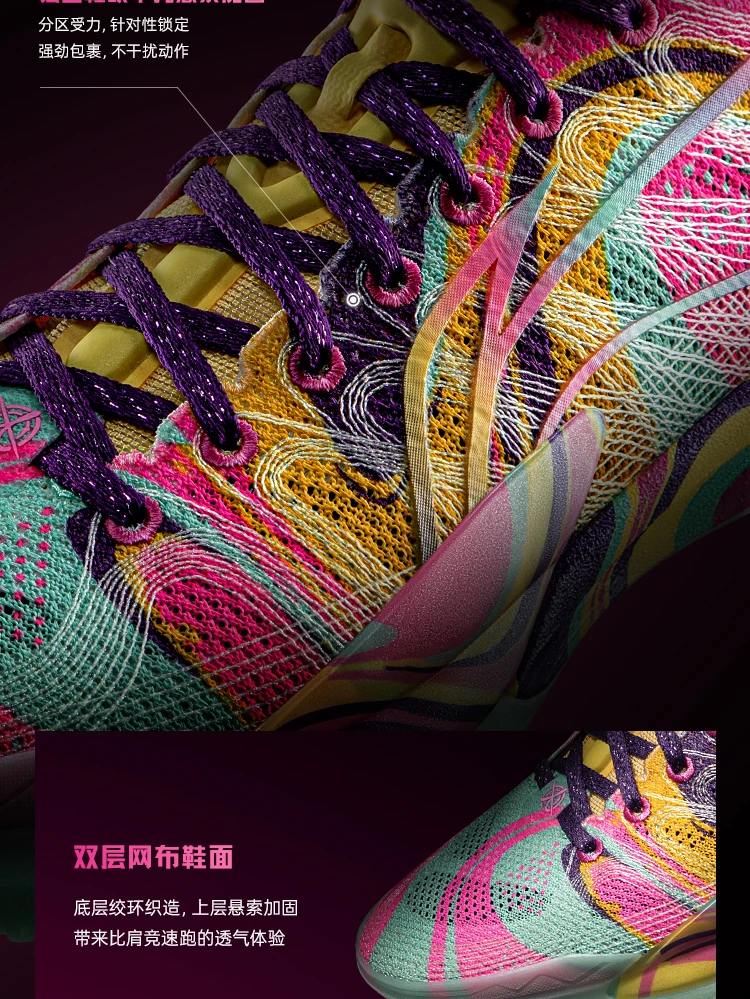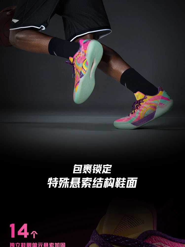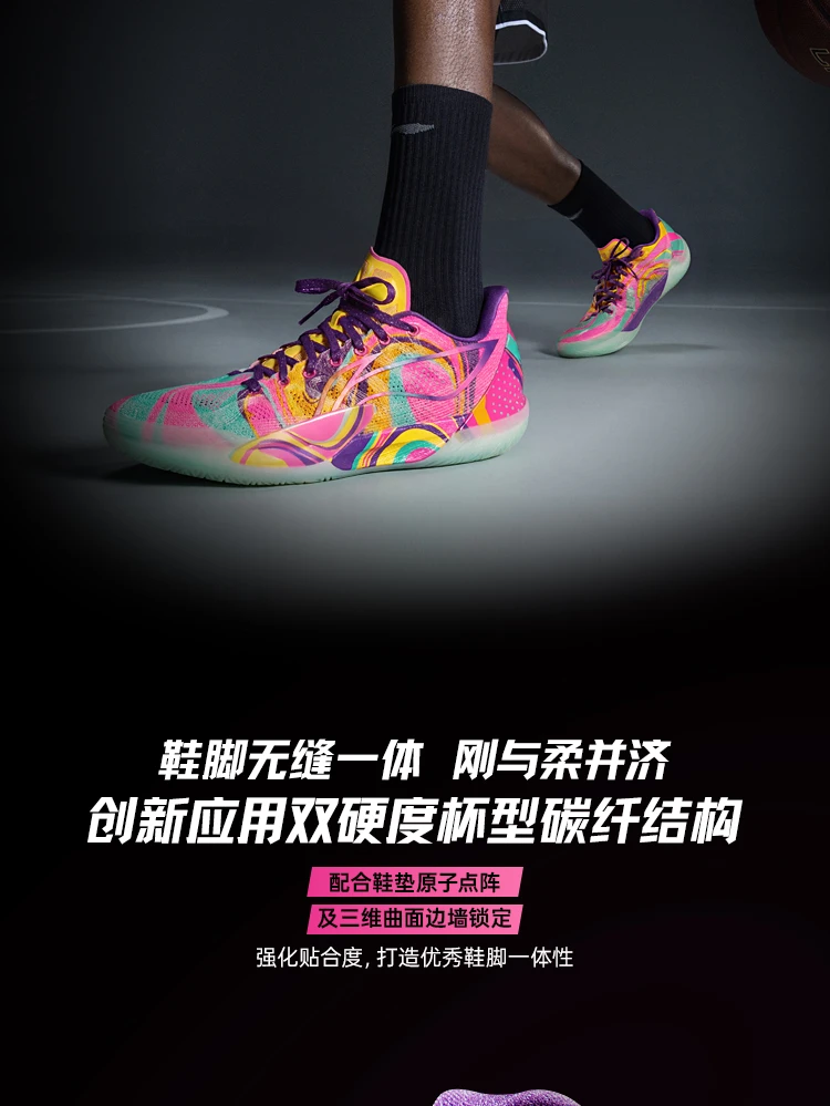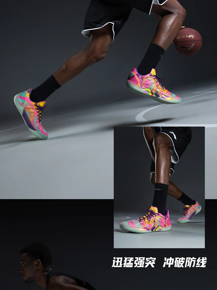 The Li-Ning Gamma 2 "Radiant" is built for quick, agile guards who prioritize speed, stability, and eye-catching style. This high-performance basketball shoe delivers professional-level tech with a vibrant fluorescent pink/cyan/yellow upper that stands out on any court.