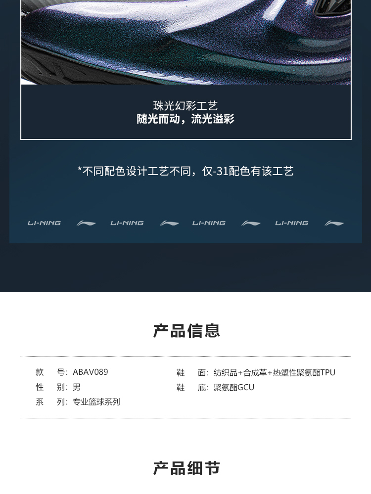 Tech:Li Ning Boom; Boom Fiber; GCU(Groud Control Unit); Carbon Fiber Plate; IBR; Carbon Core Drive System