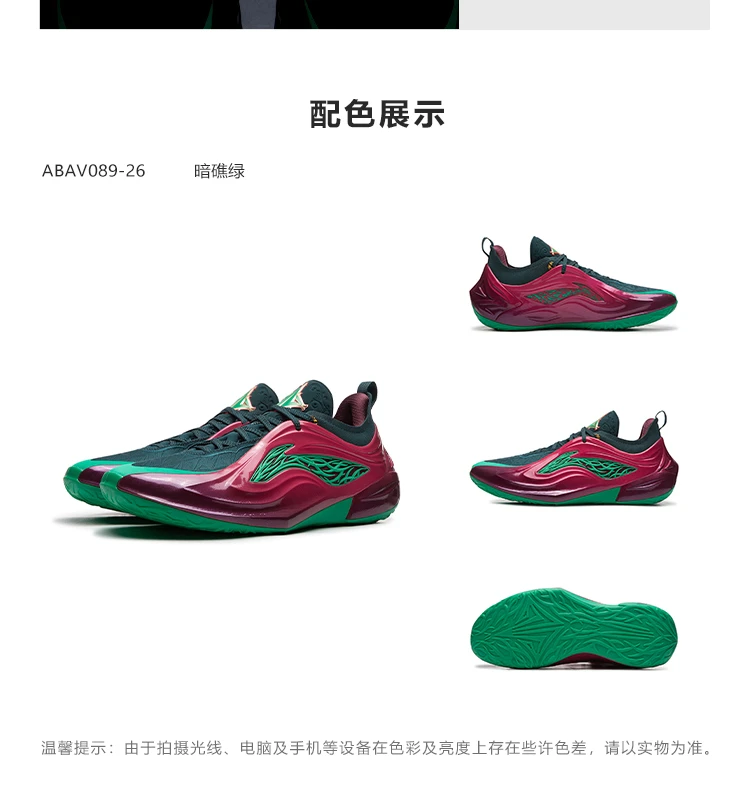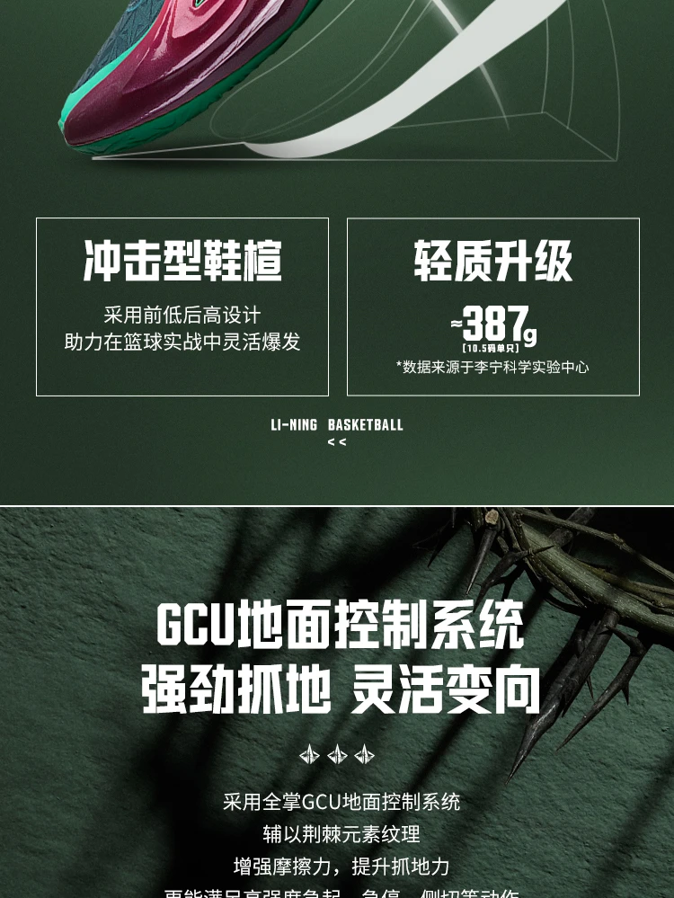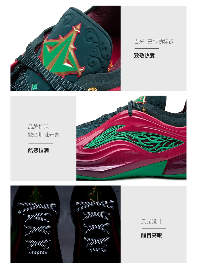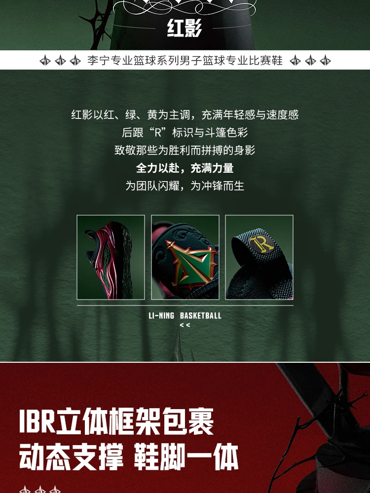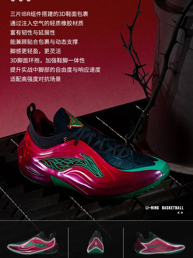 * Signature & Symbolic Details: A prominent "R" logo on the heel (paired with cape-inspired color blocking) pays tribute to the relentless pursuit of victory, aligning with Butler’s "all-in" mindset. Li-Ning’s iconic branding is integrated with thorn motifs across the upper—symbolizing resilience against tough opponents and hard-fought battles.