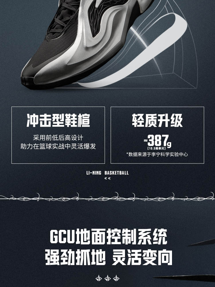 Tech:Li Ning Boom; Boom Fiber; GCU(Groud Control Unit); Carbon Fiber Plate; IBR