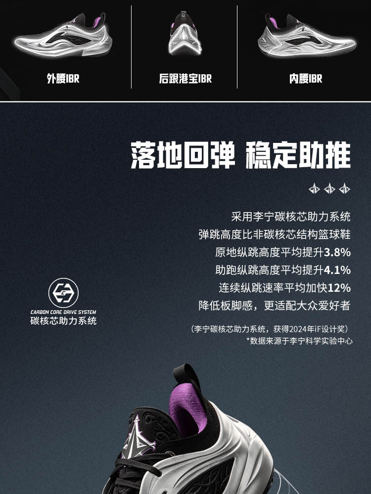 The "Thorn Path" colorway (silver-black-purple) layers symbolism: silver for calm exterior, black for quiet resilience, and purple thorns as visual markers of Butler’s career scars. Performance highlights include the Carbon Core Drive System (boosting jump height by 3.8-4.1%) and GCU thorn-patterned outsole (for aggressive grip), making it a hit among players seeking locked-in support for sharp cuts and high-intensity play.