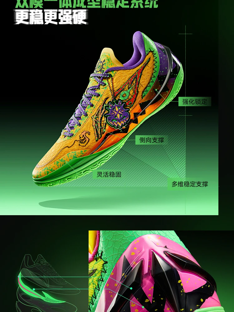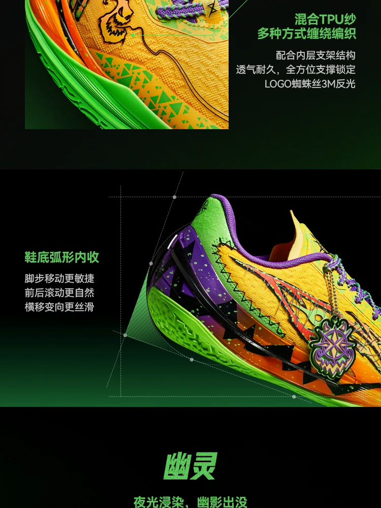 Get ready to stand out on and off the court with the Li Ning Liren 5 V2 Halloween Edition—a limited-release basketball shoe that blends iconic Halloween aesthetics with pro-level performance. Designed for young hoopers and streetwear enthusiasts alike, this shoe features a bold black-and-orange color scheme (the classic Halloween palette) accented with neon green details, evoking the vibe of jack-o’-lanterns and midnight spookiness. Dressed in classic black-orange Halloween tones with neon green accents, plus subtle details like spiderweb-patterned heel TPU and hidden totem embroidery, it stands out at parties and pickup games alike. Under the hood, full-length Boom cushioning, a supportive Pebax plate, and durable all-court outsole keep you quick, stable, and comfortable—making it a must-have for hoopers and streetwear fans craving Halloween flair.