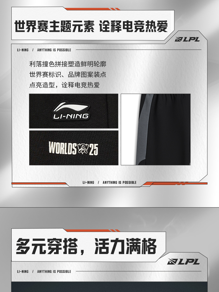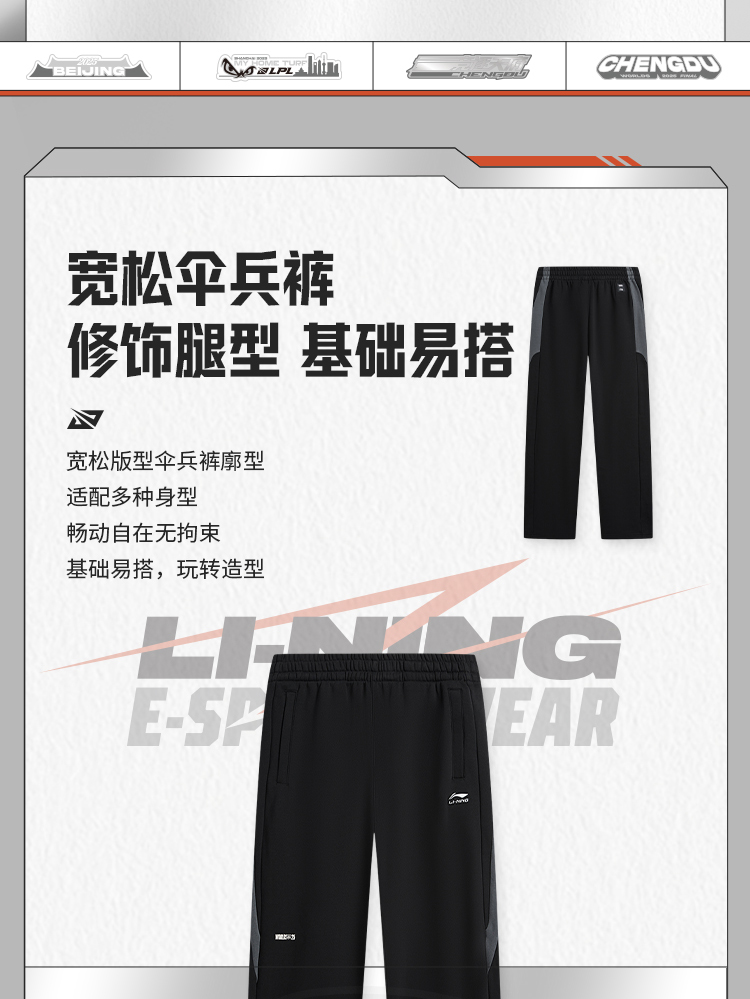 Designed as official on-and-off-court apparel for the League of Legends World Championship, these men’s sweatpants from LI-NING x LPL blend classic cargo pant utility with esports style. Crafted for LPL fans and casual wearers alike, they feature a loose parachute-inspired silhouette, functional multi-pocket design, and World Championship-themed details—perfect for gaming sessions, daily commutes, or showing support for LPL teams during the global tournament.