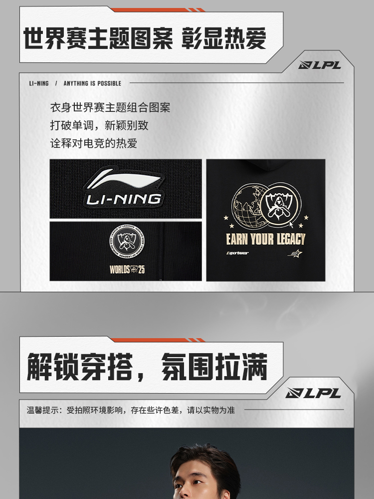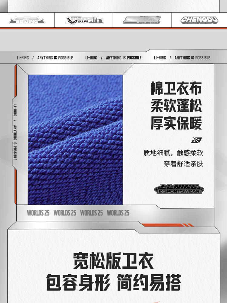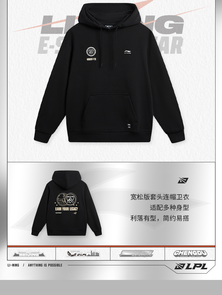 Crafted as official co-branded apparel for the League of Legends World Championship—the pinnacle global esports event of League of Legends—this pullover hoodie from LI-NING x LPL merges tournament prestige with everyday comfort. Designed for esports fans worldwide, it blends iconic LPL (League of Legends Pro League) team spirit, premium fabric, and a relaxed silhouette, making it ideal for cheering on LPL teams at watch parties, gaming marathons, or casual daily wear.