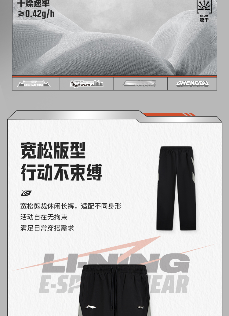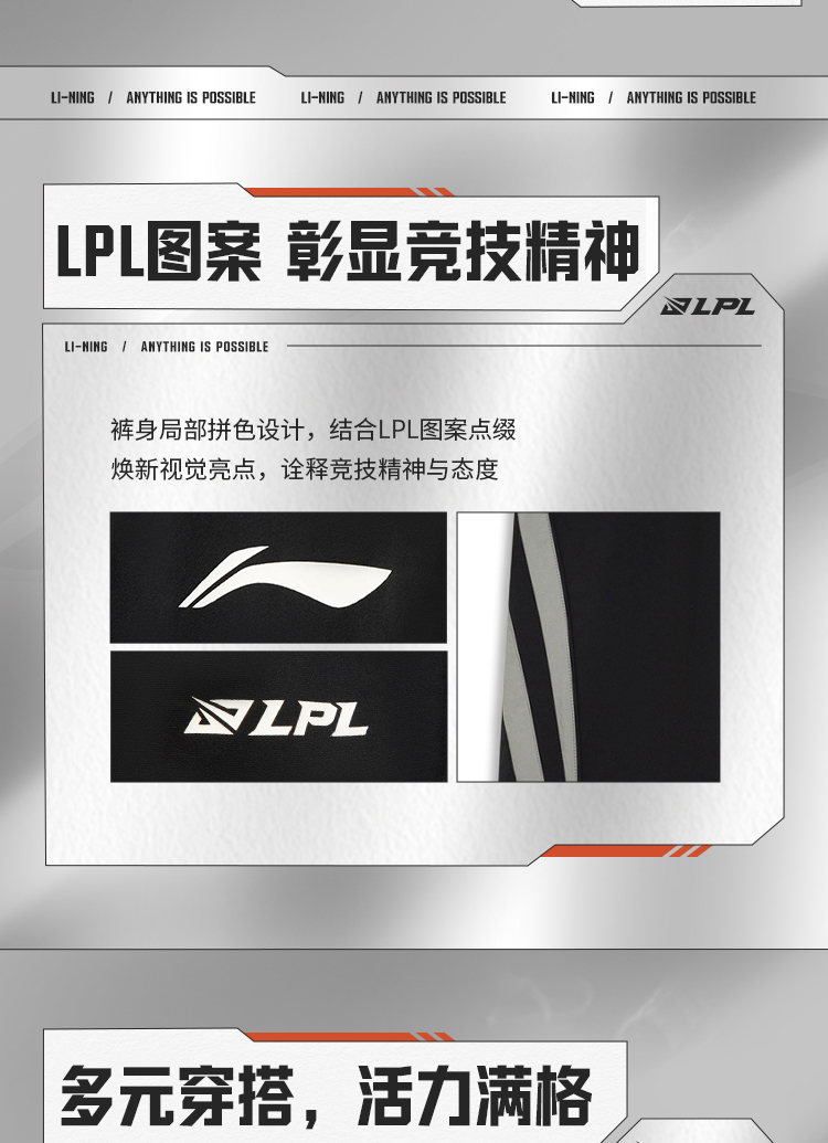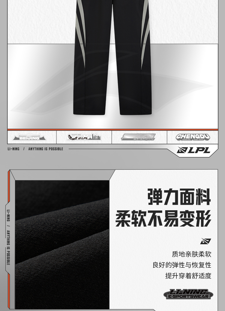 As part of LI-NING’s strategic partnership with LPL , these pants pay homage to the league’s most iconic teams and their unique cultural identities: