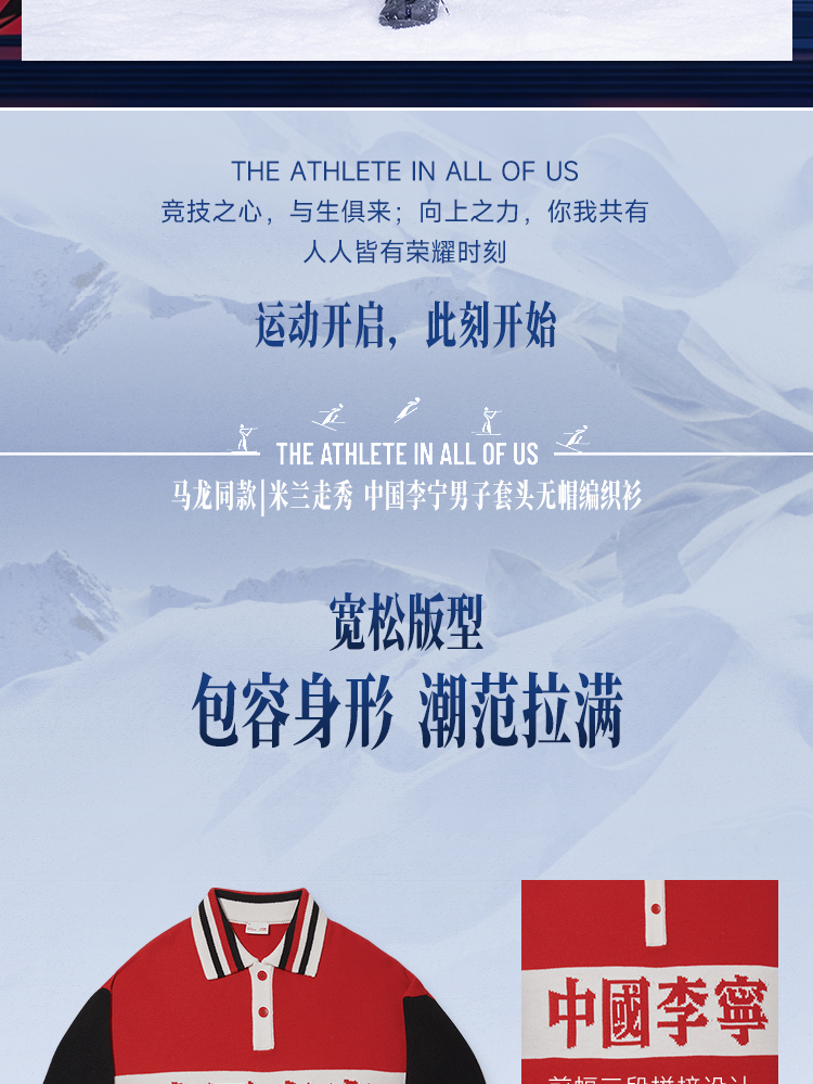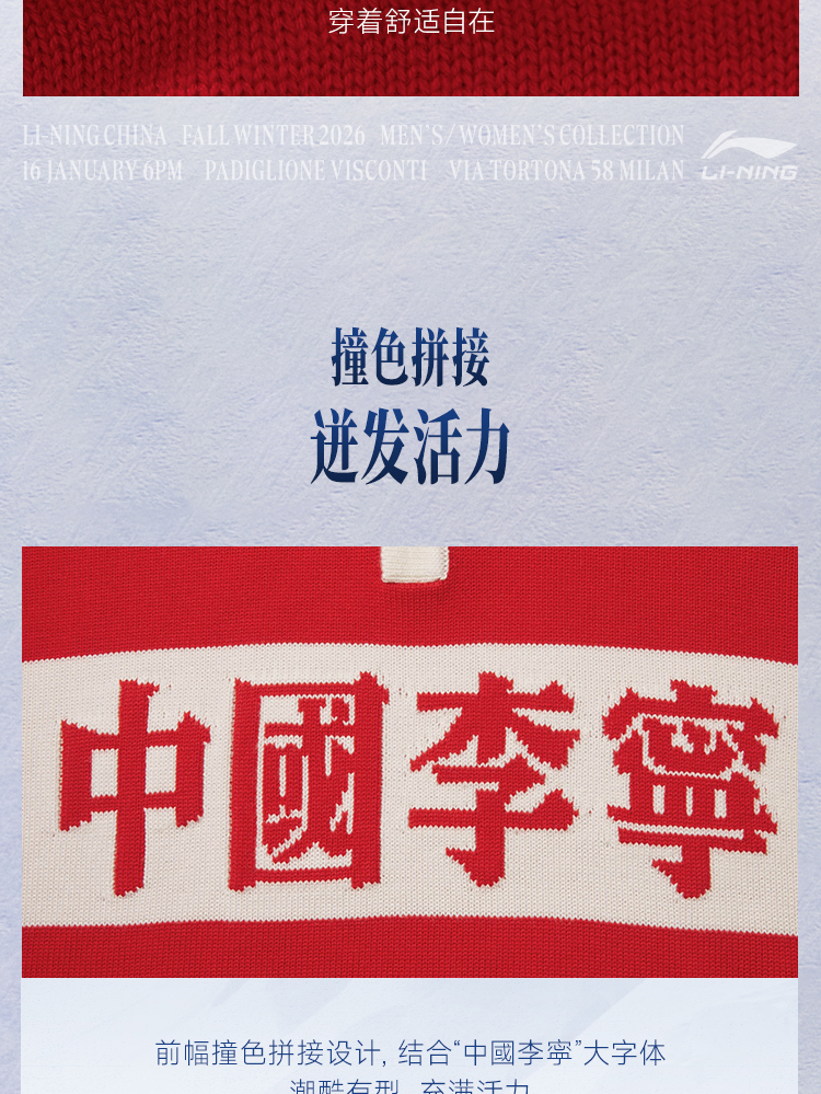 As featured on Li-Ning’s 2026 Fall/Winter Milan Fashion Week runway (January 16, 6 PM CET, Padiglione Visconti, Via Tortona 58 Milan), this men’s loose knit sweater is worn by table tennis Olympic champion and Li-Ning brand ambassador Ma Long. It embodies the collection’s theme "THE ATHLETE IN ALL OF US", merging athletic charm with retro fashion and premium comfort.