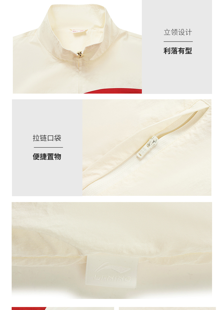 * Li-Ning DNA-inspired color-block panels (cream white/rich red/black) for bold, trendy contrast and visual depth;