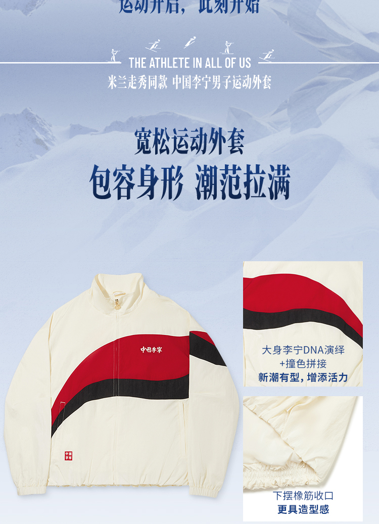As featured on Li-Ning’s 2026 Fall/Winter Milan Fashion Week runway (January 16, 6 PM CET, Padiglione Visconti, Via Tortona 58 Milan), this men’s track jacket embodies the collection’s theme "THE ATHLETE IN ALL OF US"—blending retro sporty energy with high-fashion versatility.