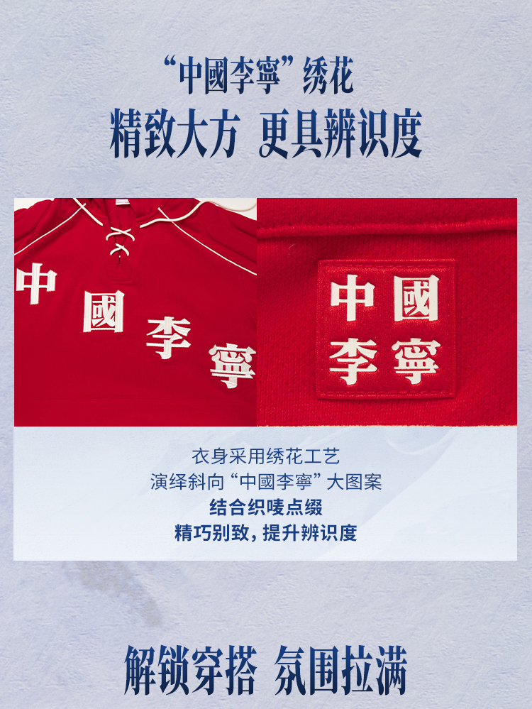 * Diagonal embroidered "Li-Ning China" logo on the front, paired with a woven label for iconic brand recognition;