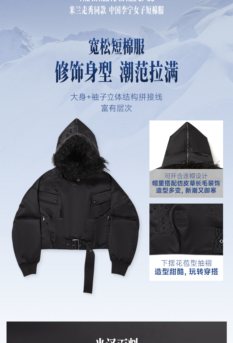 As featured on Li-Ning’s 2026 Fall/Winter Milan Fashion Week runway (January 16, 6 PM CET, Padiglione Visconti, Via Tortona 58 Milan), this women’s short puffer jacket embodies the collection’s theme "THE ATHLETE IN ALL OF US"—blending high-fashion versatility with winter warmth and practicality.