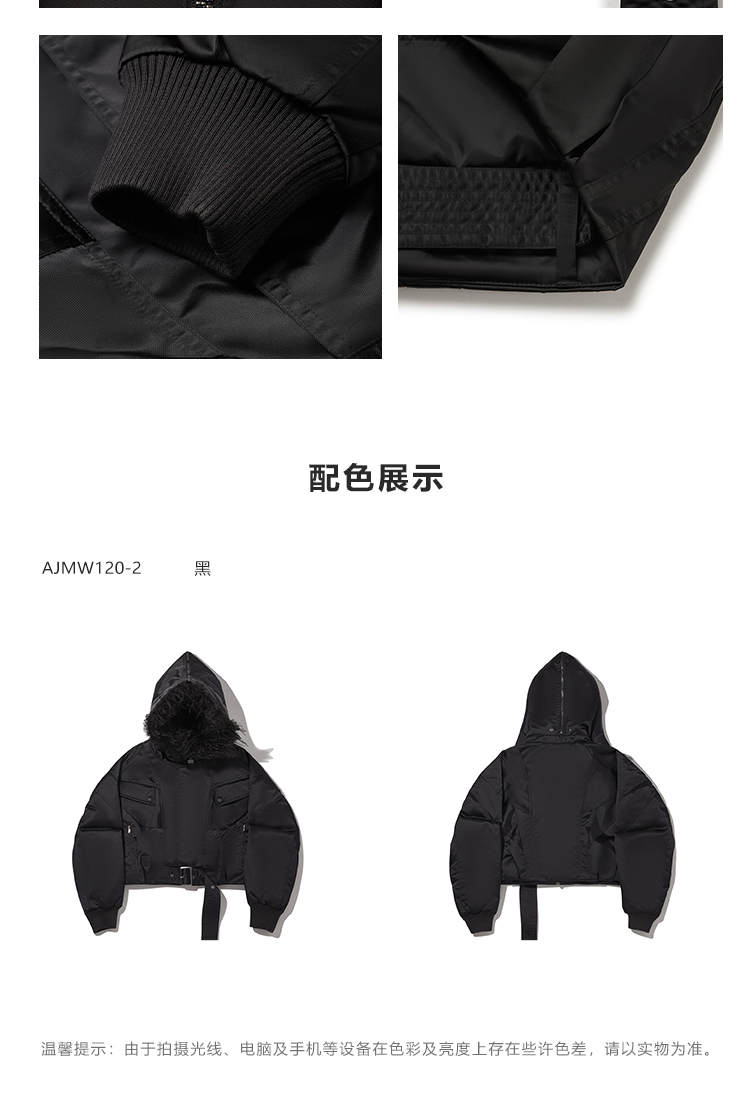 * Removable hood with faux fur lining (inside the hood) for dual-style versatility—switch between sleek and cozy, while enhancing cold resistance;
