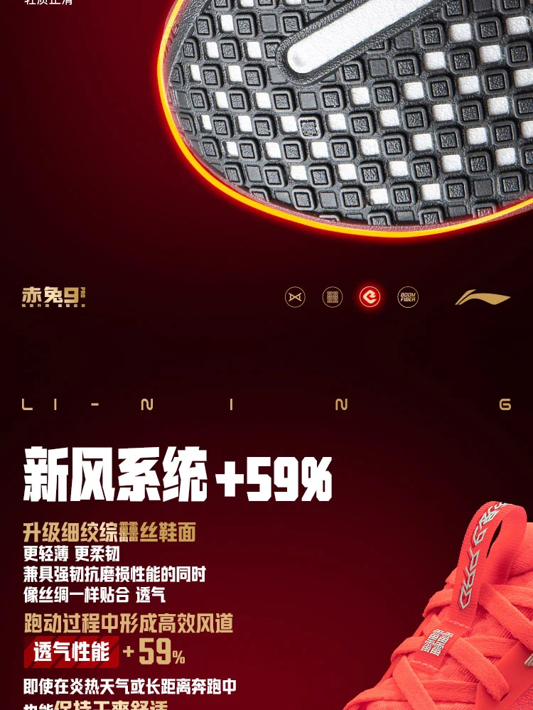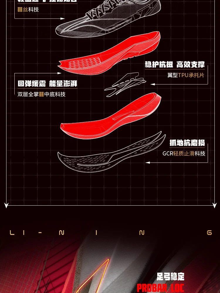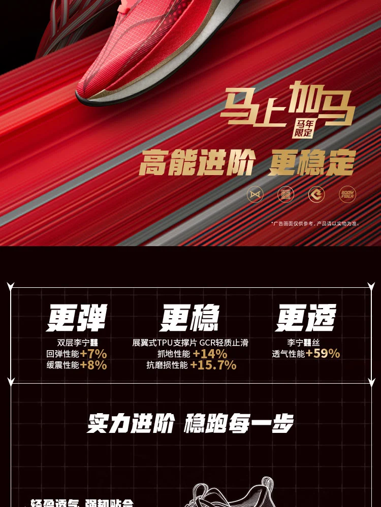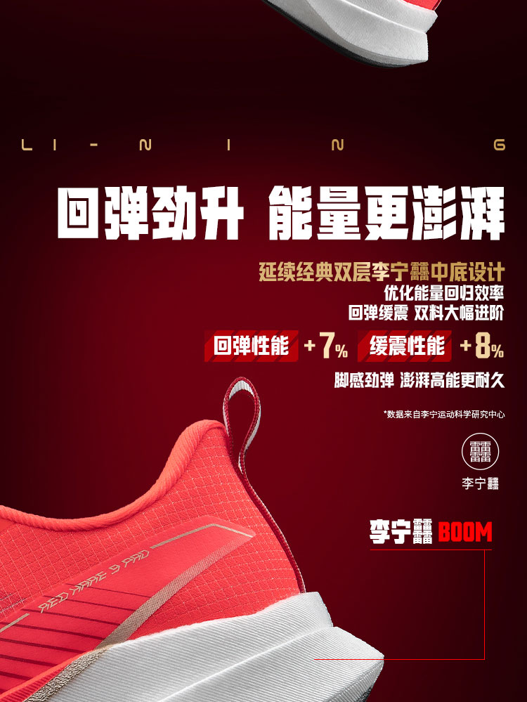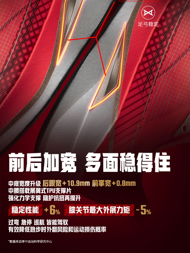 Full-length dual-layer Li-Ning BOOM midsole delivers 7% improved rebound and 8% enhanced cushioning, with optimized energy return for snappy toe-offs and soft landings. Widened by 10.9mm at the heel and 0.8mm at the forefoot, paired with a new wing-shaped TPU support sheet, it boosts stability by 6% to minimize overpronation. Reduces knee abduction moment by 5%, offering premium joint protection during long-distance runs or high-mileage training cycles.
