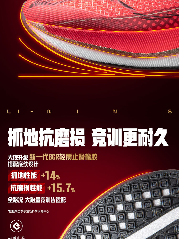 Next-generation GCR (Ground Control Rubber) outsole is lighter than standard rubber (floats on water) with 14% better grip and 15.7% improved wear resistance. Custom zonal tread pattern tackles urban asphalt, plastic tracks, and wet surfaces with confidence, maintaining reliable traction even after 300+ km of use – perfect for runners who train across diverse environments.