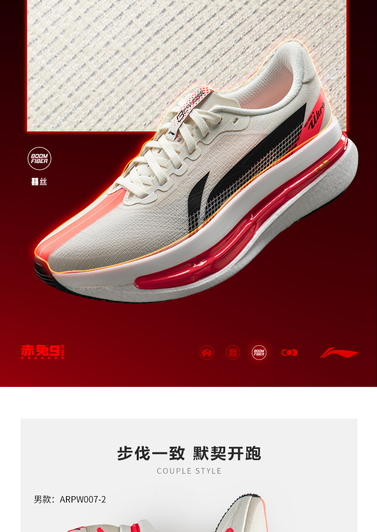 Introducing the 2026 Li-Ning Red Hare 9 ULTRA Women’s Running Shoes – a women-specific flagship non-carbon plate racing trainer, engineered for high-intensity training, half/full marathon preparation, and even exam fitness tests. Designed to balance pro-level performance with on-trend style, it packs Li-Ning’s revolutionary Super Boom Capsule tech for near carbon plate propulsion, paired with a sleek Champagne White colorway and UV-reactive glow patterns (visible under blacklight) that make it stand out in training or daily wear.