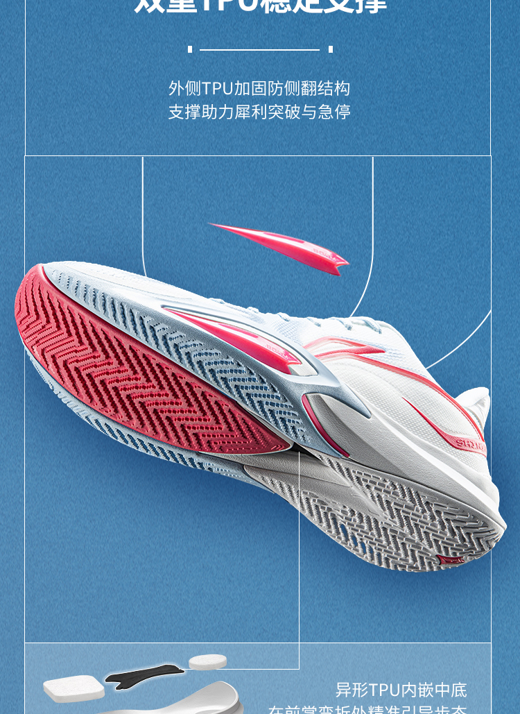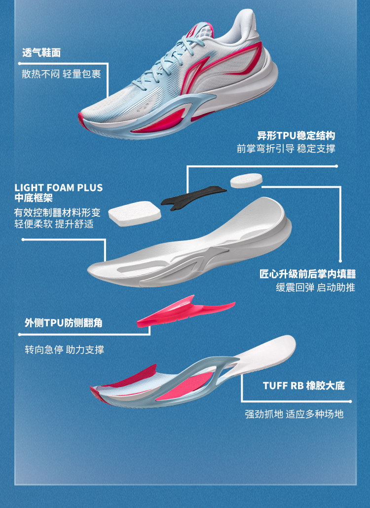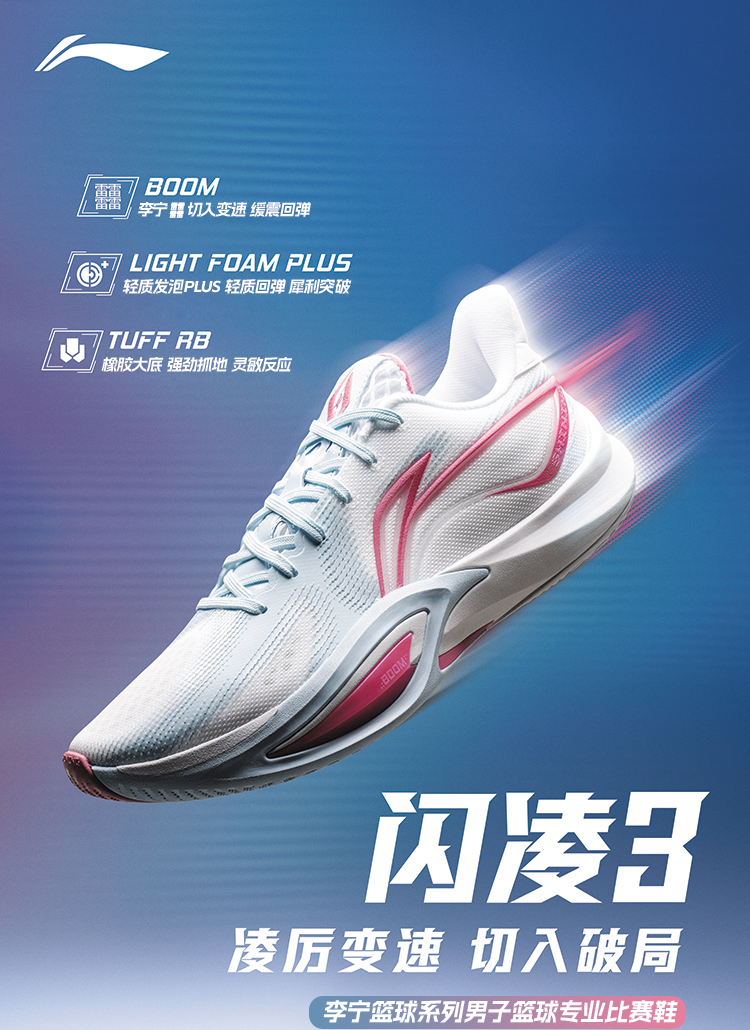 The Li-Ning Shining 3 is a professional men’s basketball shoe from Li-Ning’s basketball lineup, built for lightweight agility and great value—perfect for smaller-framed players who thrive on quick drives and sharp cuts. Designed with the slogan “Sharp Speed Shifts, Cut Through the Game”, it balances on-court performance with everyday affordability.