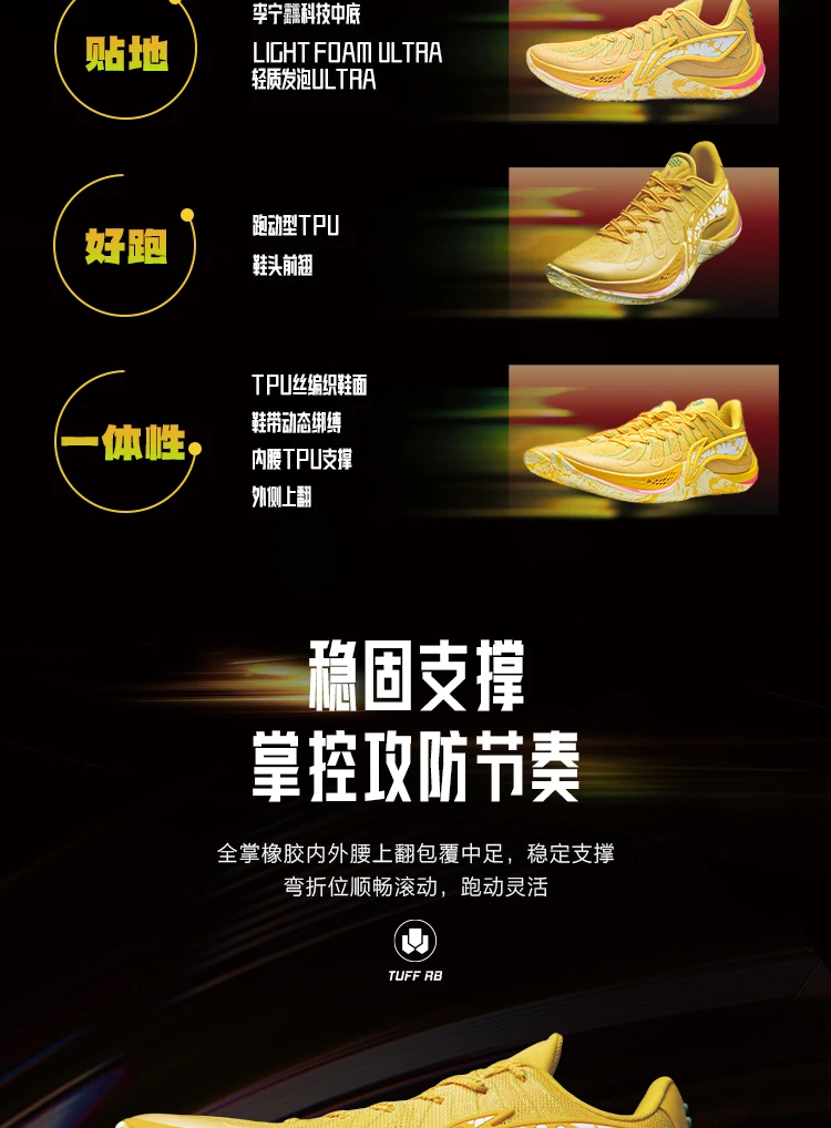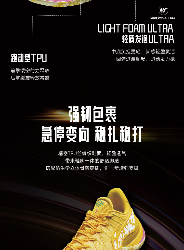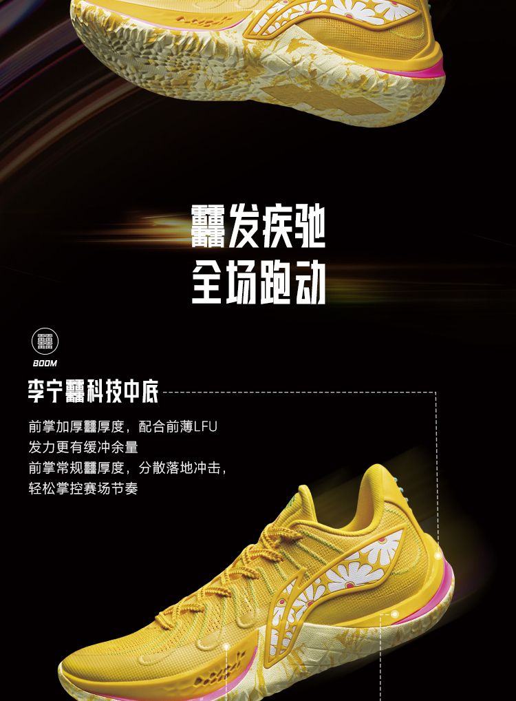 * Next-Gen Cushioning System: The midsole features Li-Ning’s signature full-length BOOM lightweight foam, paired with a LIGHT FOAM ULTRA support frame. This dual-foam setup delivers instant energy return and prevents over-roll, while a dual-density insole provides targeted heel and midfoot cushioning.