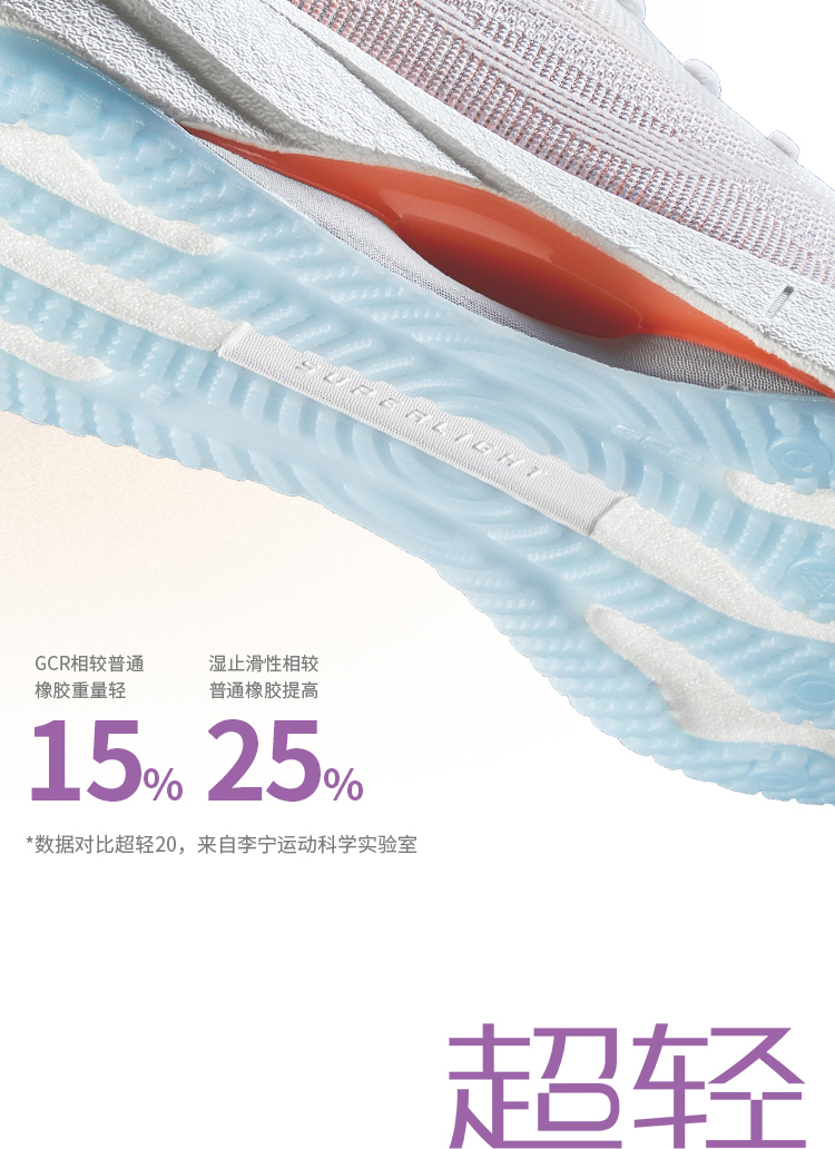The latest Li Ning Super Light 21 is upgraded by Li Ning including weight(below 200g for one us9), 5% cushion and ventilation compared with superlight 20. As premium lightweight running shoes, Li Ning also added latest Li Ning tech on the sneakers including Li Ning Boom; Boom Fiber and GCR LOC.