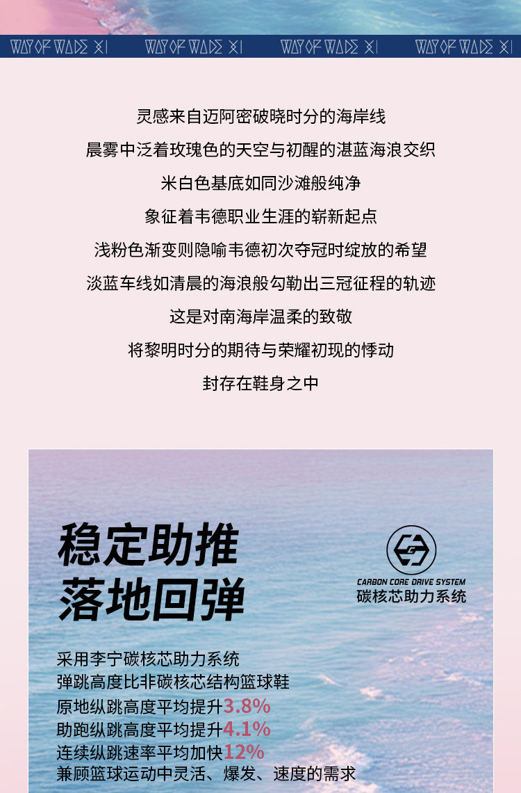 Inspired by the breathtaking coastline of Miami at dawn, the Way of Wade 11 "South Beach" encapsulates the magical moment when rose-hued skies blend with the first light of day over the azure ocean. More than just a basketball shoe, it’s a wearable tribute to Dwyane Wade’s legendary career and the vibrant spirit of South Beach—where every detail weaves a story of new beginnings, hard-fought victories, and enduring glory.