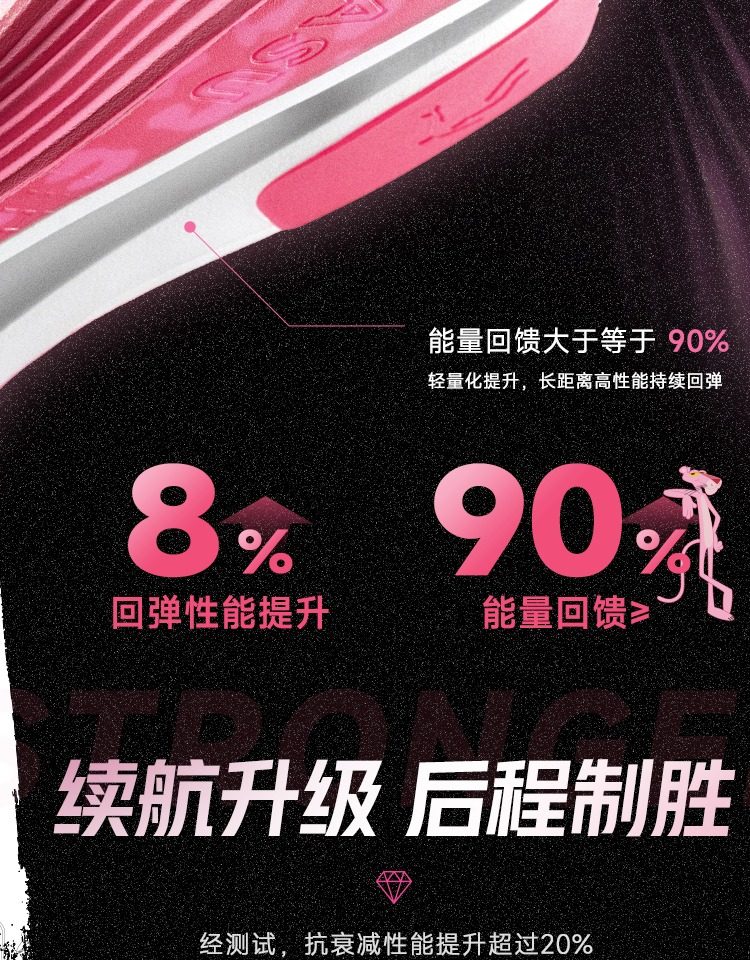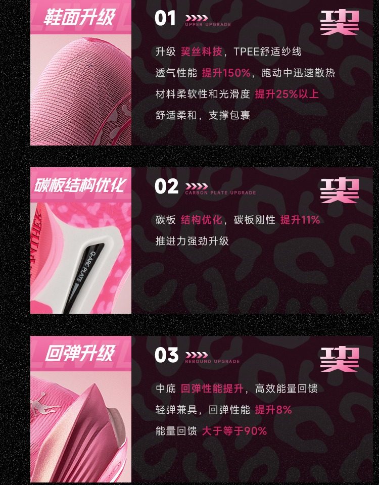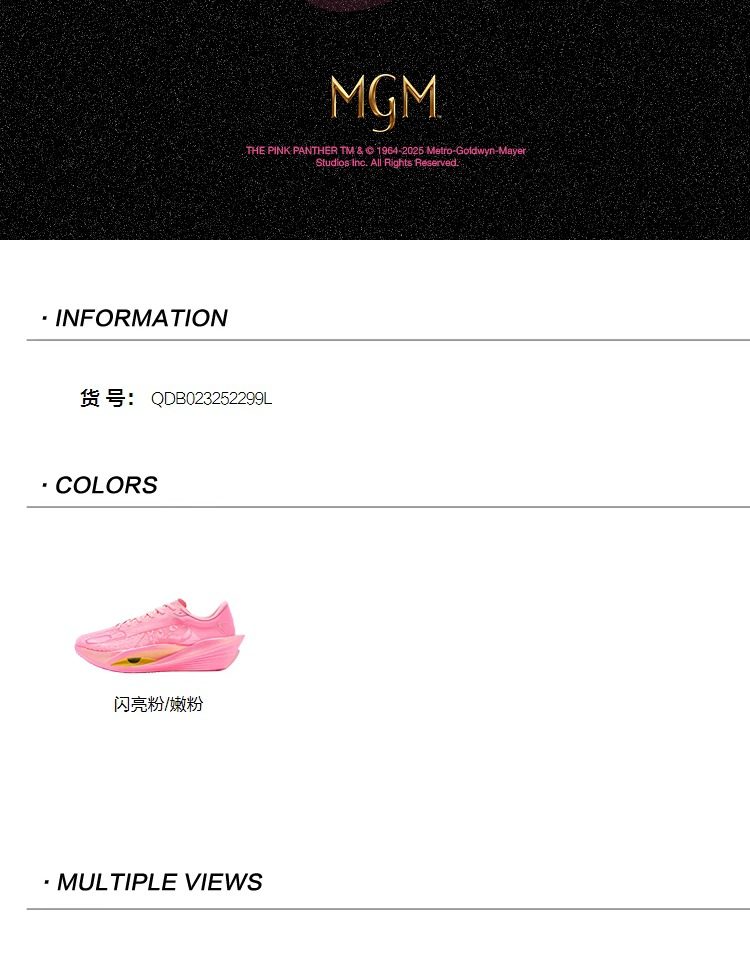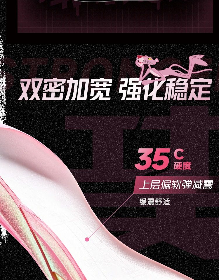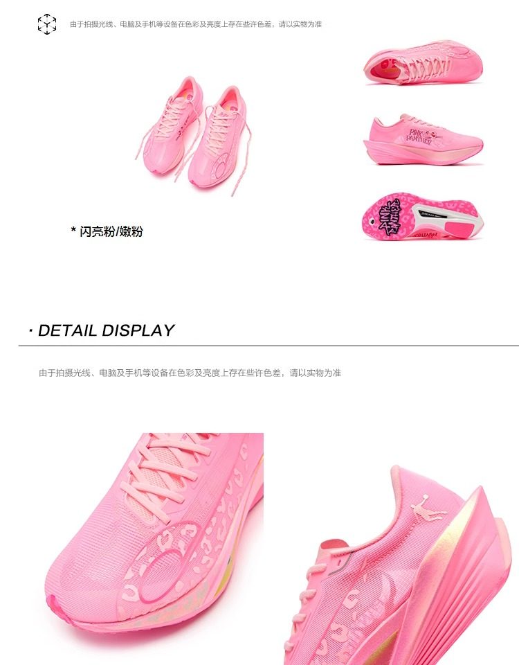 * Core Theme: Leap Like a Panther – the design captures the Pink Panther's iconic playful yet fierce spirit, combining the IP's signature pink hue with classic leopard print to break the monotony of traditional racing shoes.