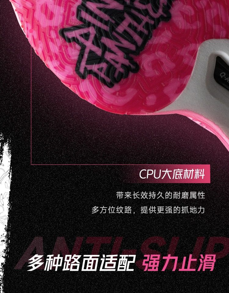 * Co-branded Qiaodan x Pink Panther graphic on heel