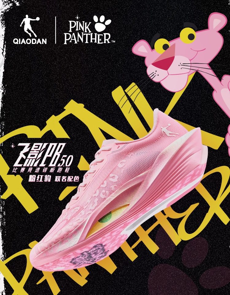 Introducing the Qiaodan Feiying PB5.0 x Pink Panther – the 2025 flagship collaborative racing shoe that merges Qiaodan's professional marathon technology with the iconic, playful charm of the Pink Panther IP. Designed for elite long-distance runners, this unisex model fuses race-ready performance with bold, eye-catching design, making it a perfect choice for serious marathon competitions, high-intensity training and collectors of limited-edition IP footwear.