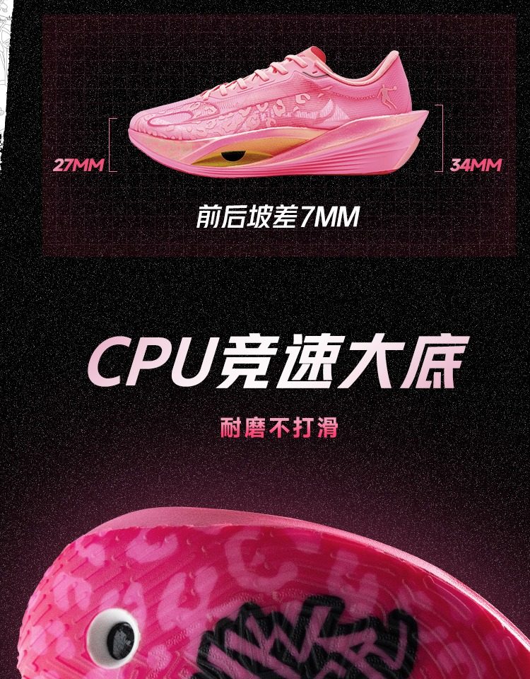 Engineered to deliver peak performance on roads and tracks, it features Qiaodan's upgraded core tech, including the high-rebound Q-KUNGFU PRO HP midsole and a stiffness-optimized parameterized carbon plate, ensuring explosive propulsion and lasting energy return even over 42km. The ultra-light 178g construction minimizes fatigue for long runs, while the exclusive Pink Panther design details add unique collectible value without compromising on racing functionality.