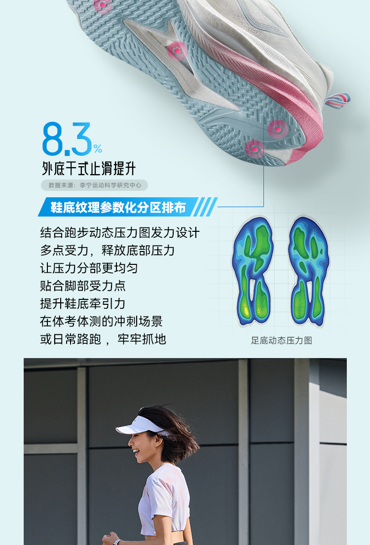 * Durable & High-Traction Outsole: Crafted from injection-molded TPU, the outsole features parameterized zonal traction patterns that boost dry-surface grip by 8.3% and deliver exceptional wear resistance (withstanding 100,000 flexes at room temperature). It remains flexible even at -20℃, ensuring reliable traction on asphalt, tracks and wet surfaces.