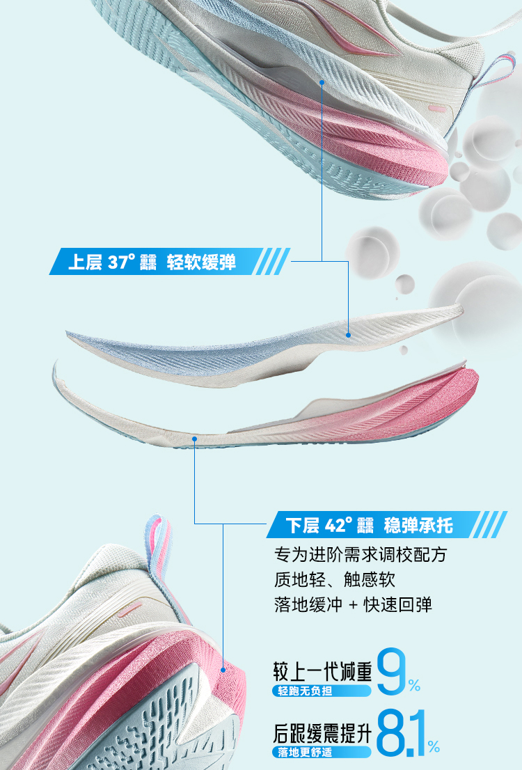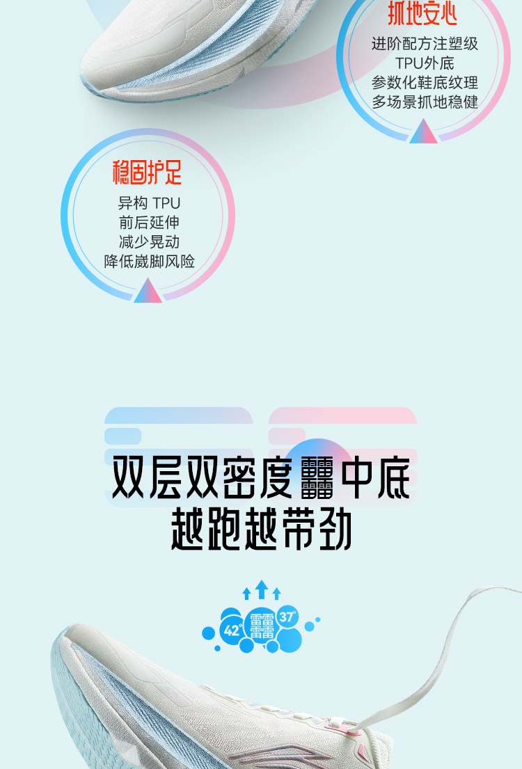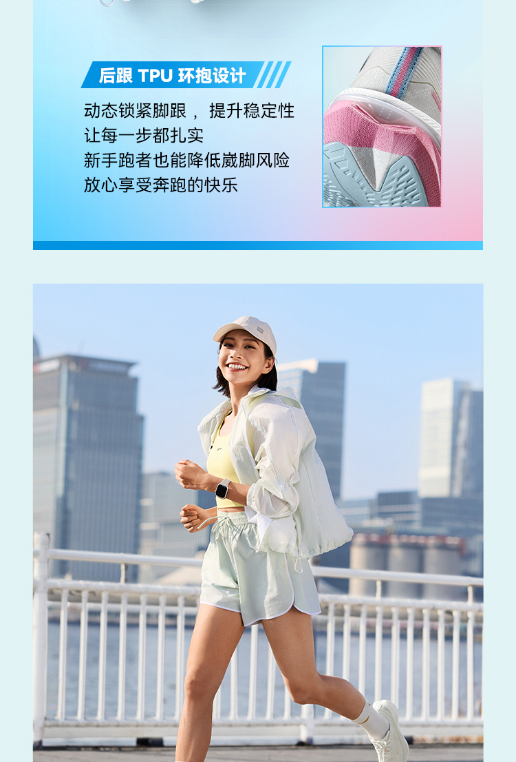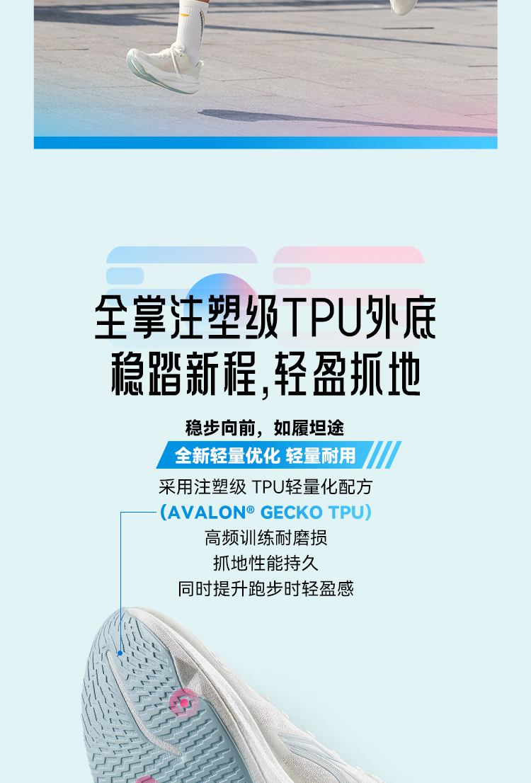 * Heterogeneous TPU Support System: An integrated TPU structure, complete with midfoot reinforcing bars and heel环抱设计 (wrap-around heel construction), enhances anti-torsion capability and ankle stability. It reduces lateral movement of knees and hips by 42%, lowering injury risks and easing post-run muscle soreness—ideal for runners prioritizing joint protection.