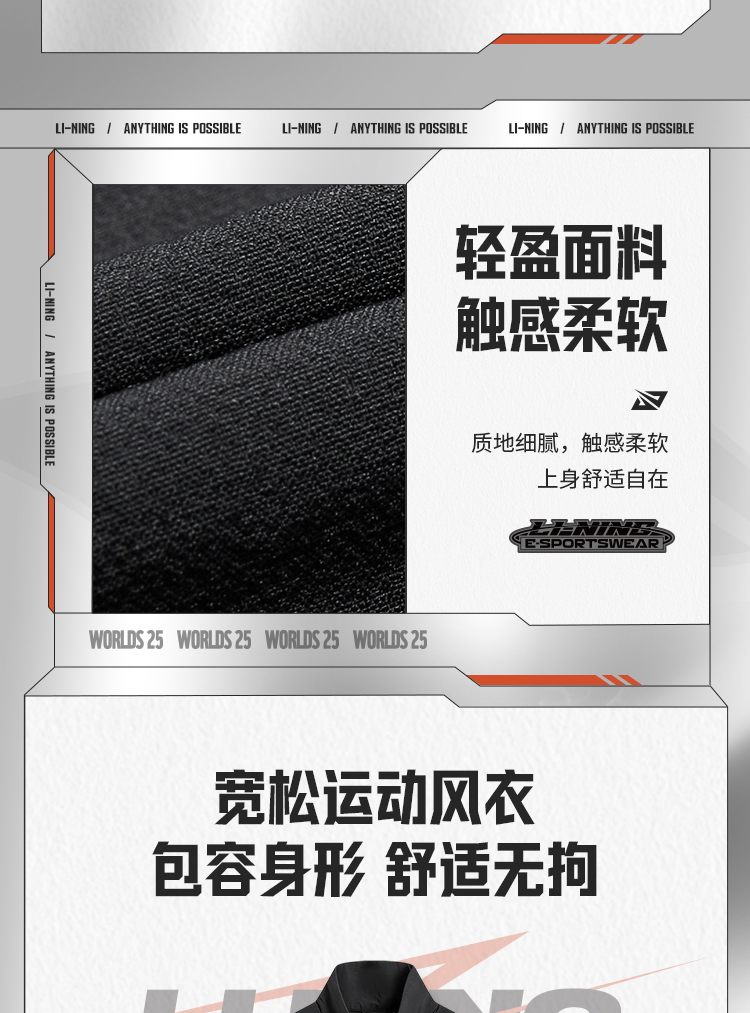 * Color Philosophy: The main color scheme of “matte black + dark iron gray” exudes a cool vibe suitable for esports scenes, paired with a 3D silver silicone Li-Ning logo. It not only fits the sleek aesthetic of esports but also hides the “ink wash gradient” Oriental artistic conception, visually echoing the competitive styles of the 4 teams.