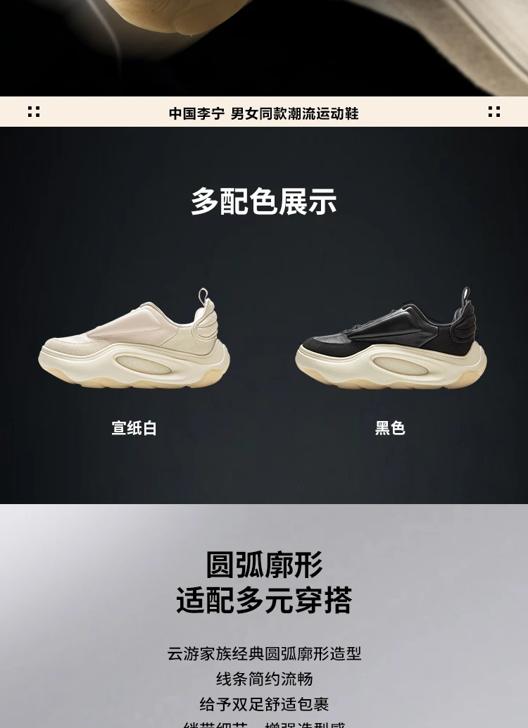 Li Ning Yunyou Snow is a trendy sports shoe under the China Li-Ning brand, which has attracted much attention for its unique design and technological configuration. Inspired by the line "The road ahead is long; I will search high and low", it forms a flexible silhouette through the collision and integration of square and circular lines. It also belongs to the classic arc silhouette of the Yunyou family, with simple and smooth lines.