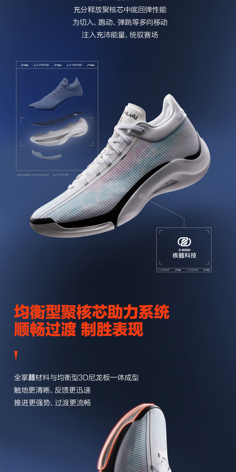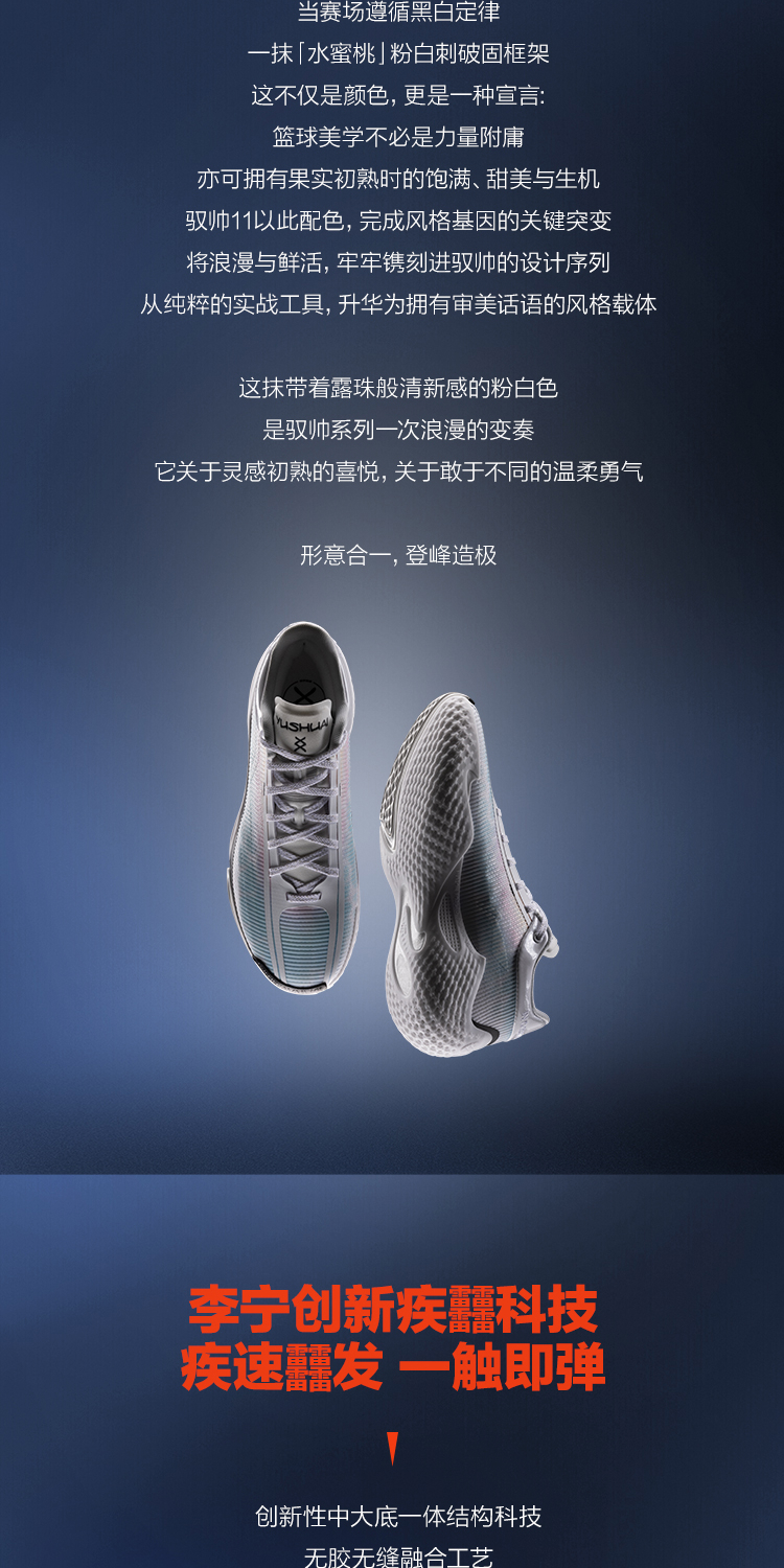 The Yushuai 20 Zao Ji 11 is more than a shoe—it’s a nostalgic love letter to the 2017 Li-Ning Yushuai 11, the most beloved colorway in the Yushuai legacy: Peach Pink. We’ve preserved every detail of that legendary soft white-and-peach-pink palette that defined court style a decade ago, while rebuilding the entire performance core with Li-Ning’s latest G‑Boom (疾䨻) glue-free integrated system. Now you get the iconic, head-turning look of the Yushuai 11 Peach Pink—paired with zero-lag propulsion, explosive cushioning, and all-court stability that’s fit for today’s game.