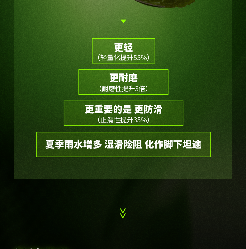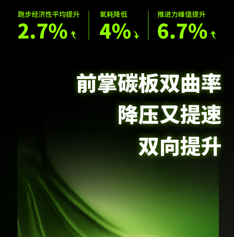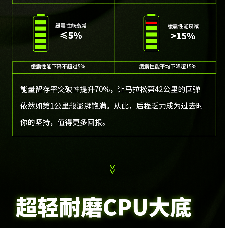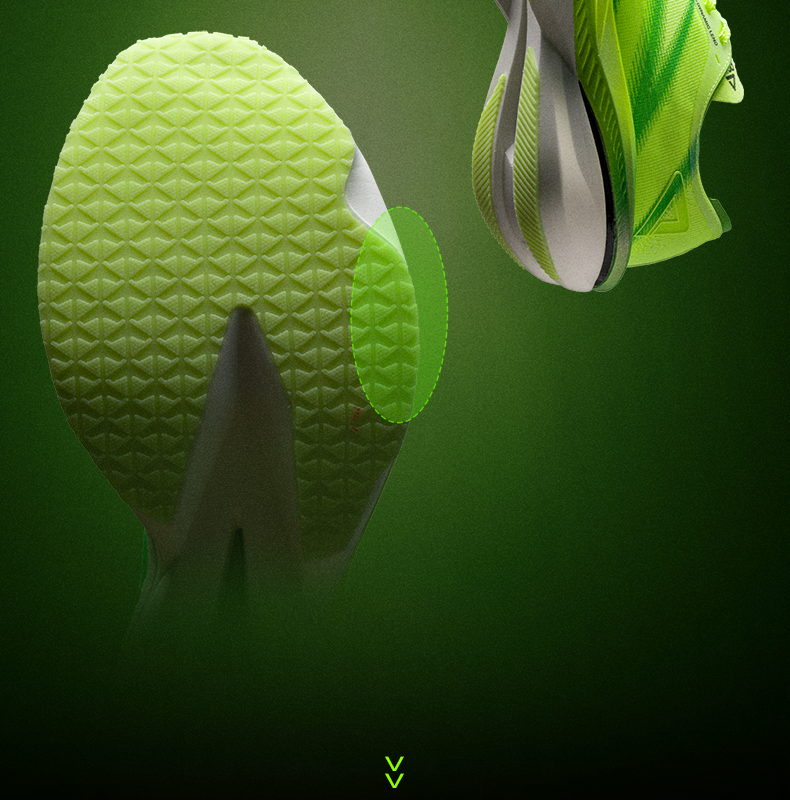 Ultra-lightweight CPU rubber outsole (55% lighter than traditional rubber) offers 3x better wear resistance and 35% improved slip resistance (official data). A zoned tread pattern grips asphalt, track, and wet surfaces reliably, with an estimated lifespan of 500+ km – perfect for high-mileage training and multiple races.