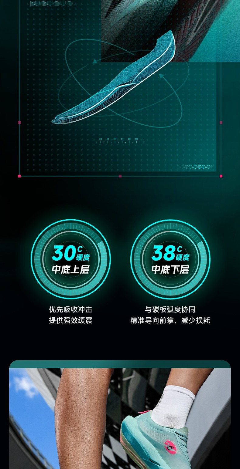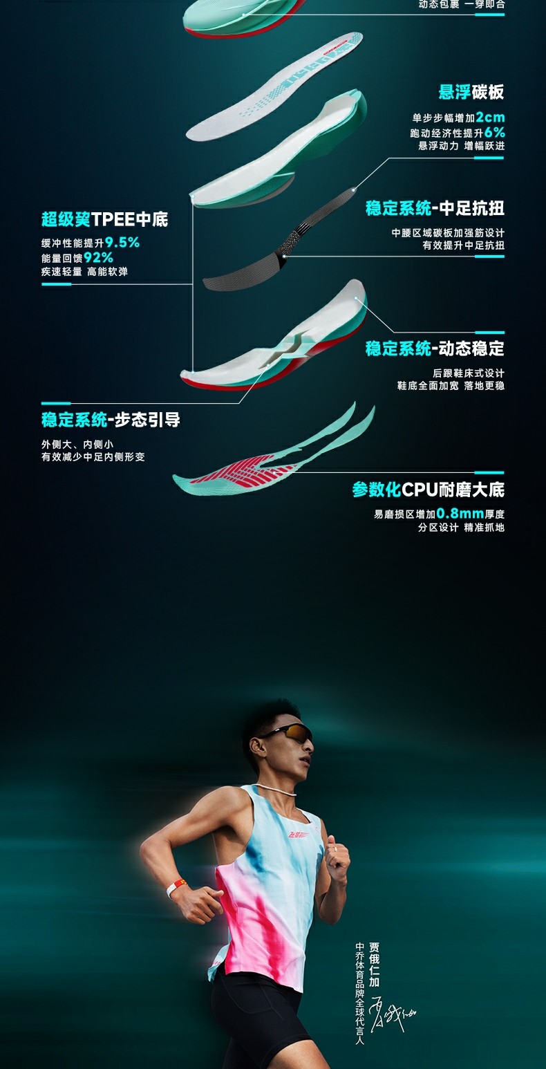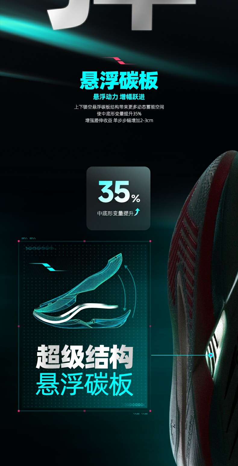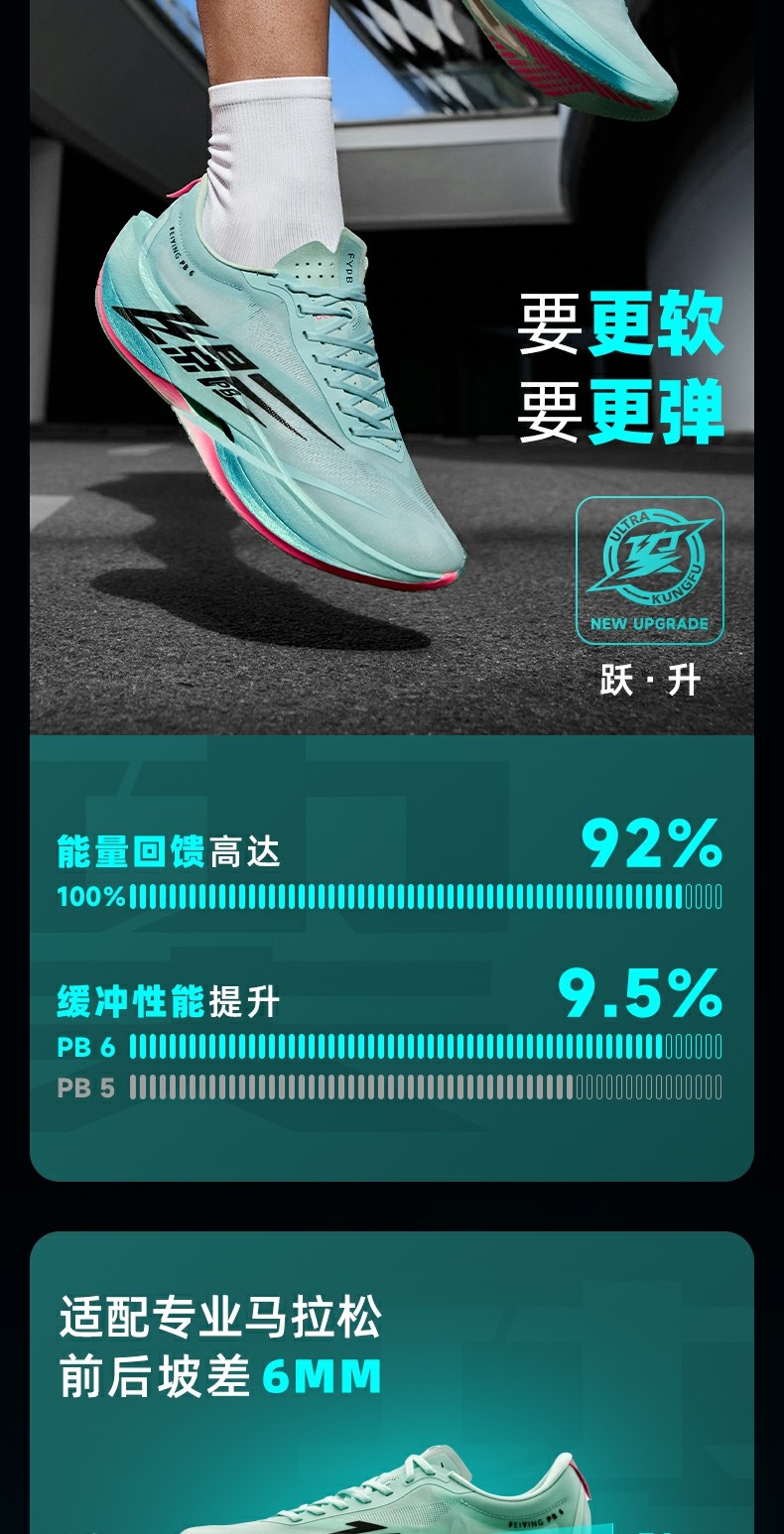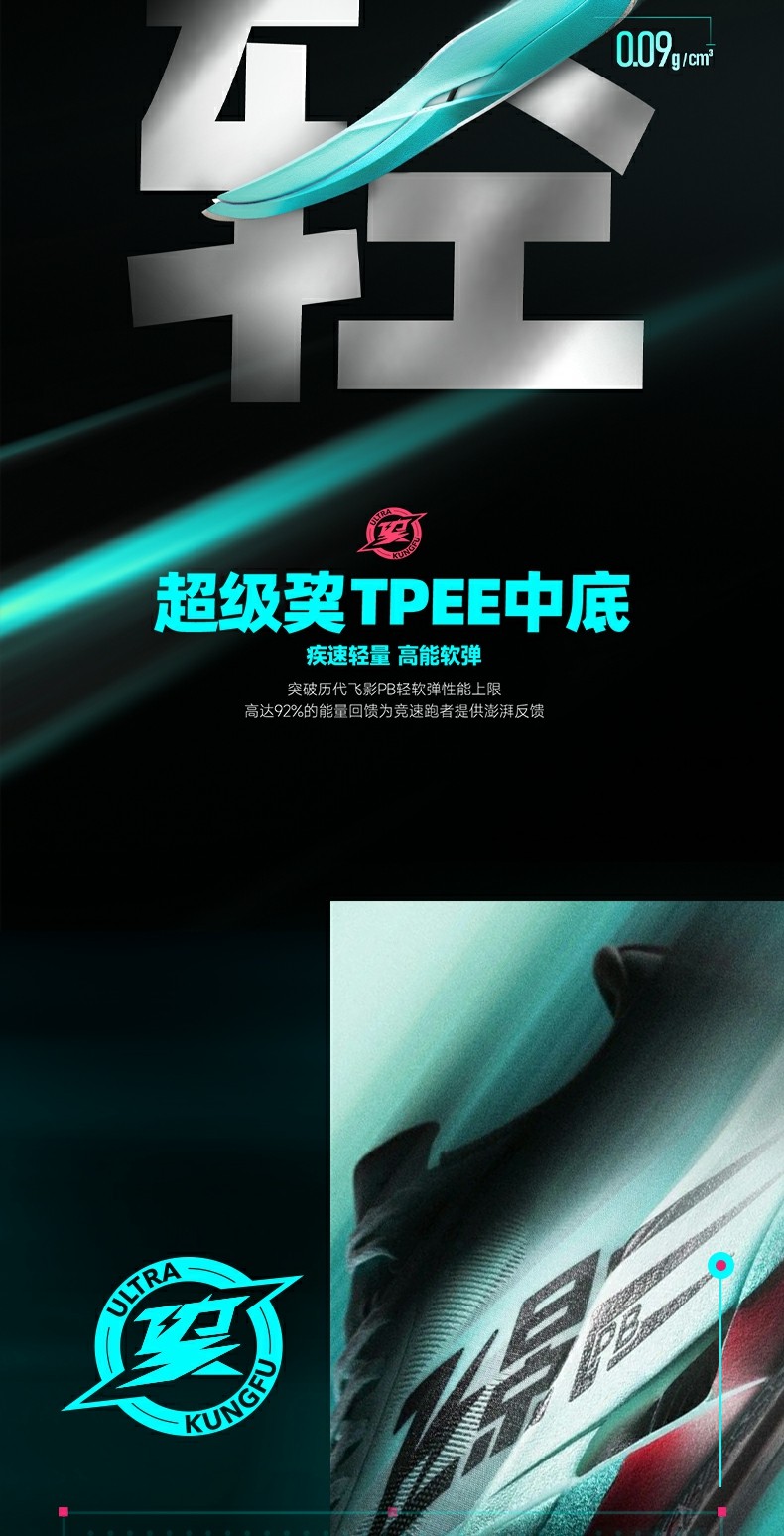* Midsole Technology: Super Q-KUNGFU TPEE (92% energy return, 9.5% cushioning boost)
