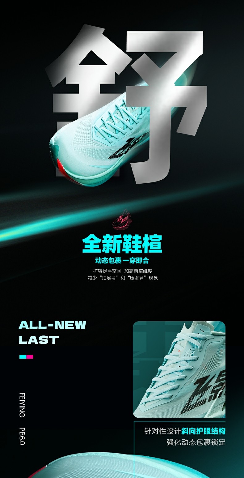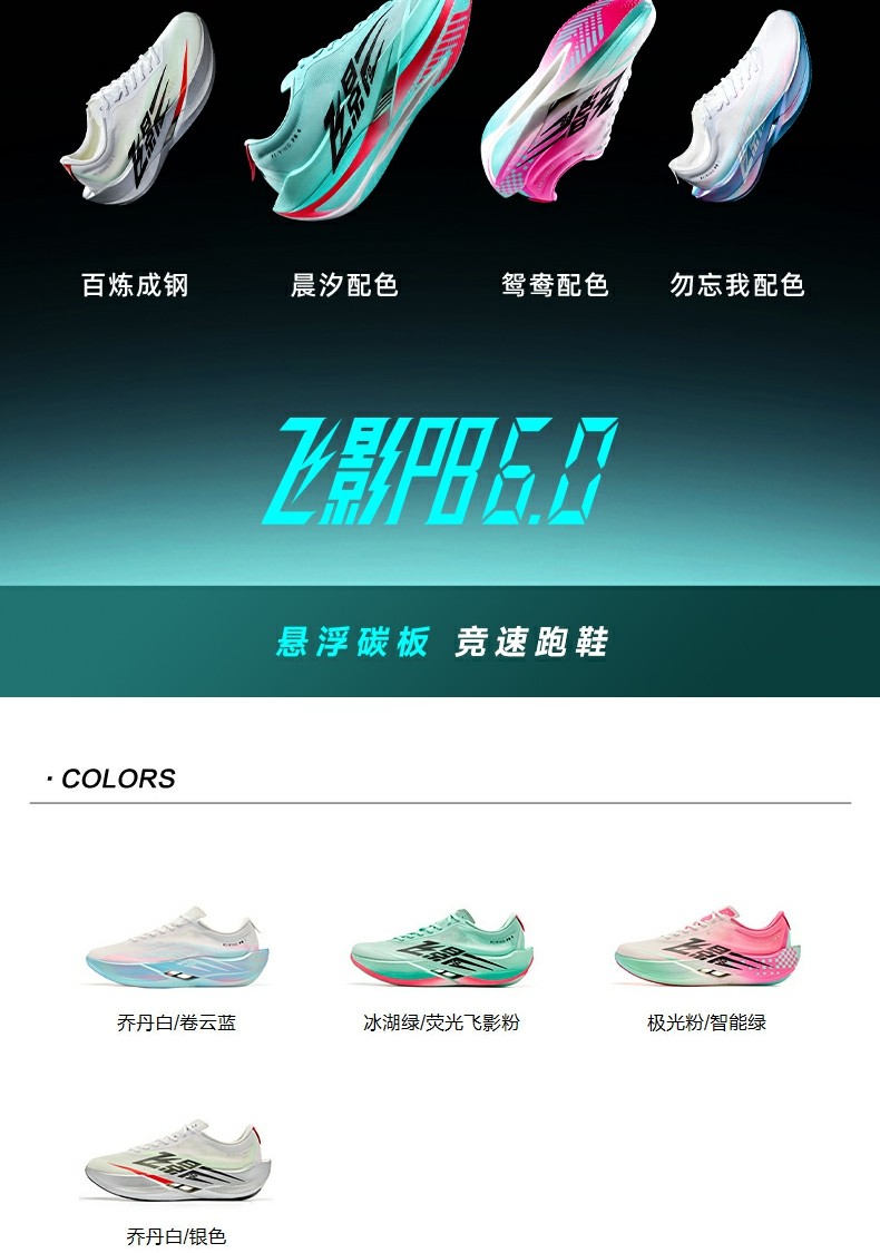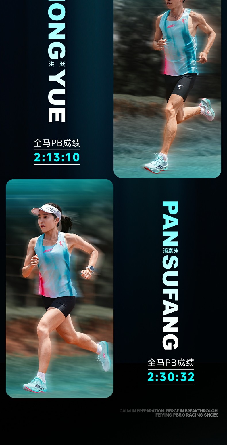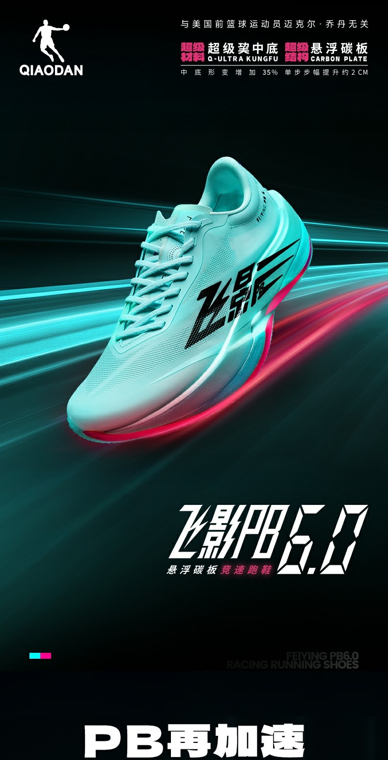 Introducing the Qiaodan Feiying PB 6.0 – 2025’s flagship men’s carbon-plate racing shoe, powered by Qiaodan’s signature Super Q-KUNGFU TPEE foam technology and endorsed by elite athlete Jia Yiren. Built for marathon PBs and high-intensity training, it combines 92% energy return with a suspended carbon plate to deliver sustained, natural propulsion for 42km races.